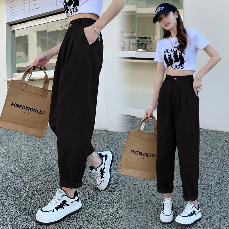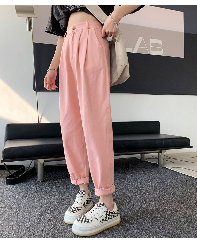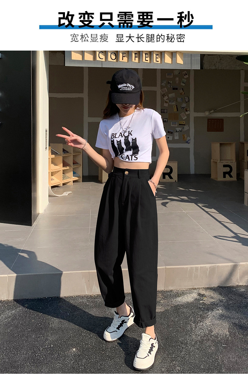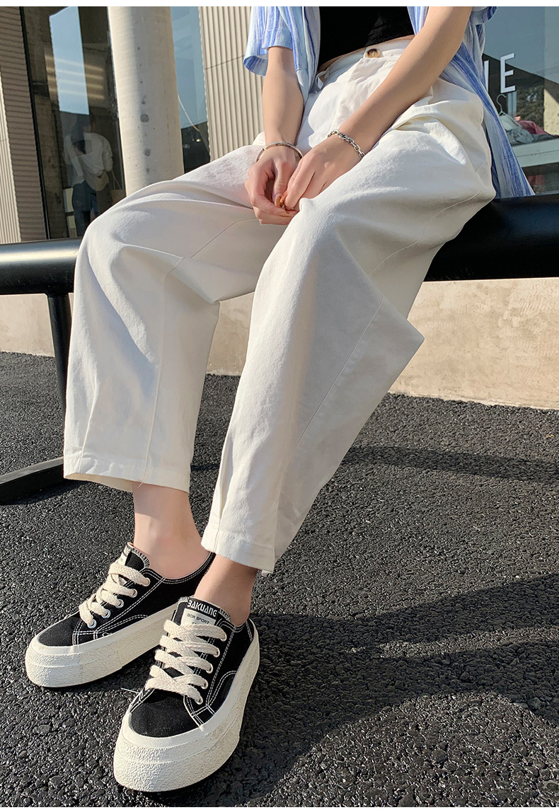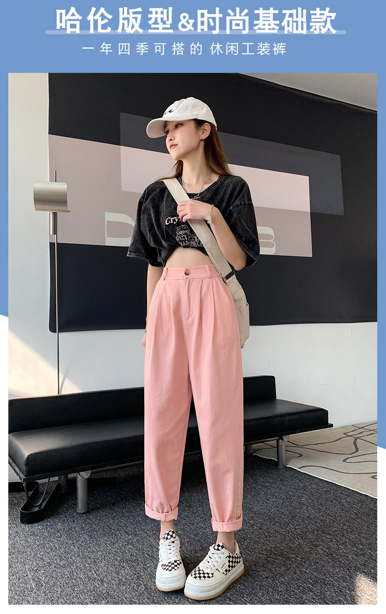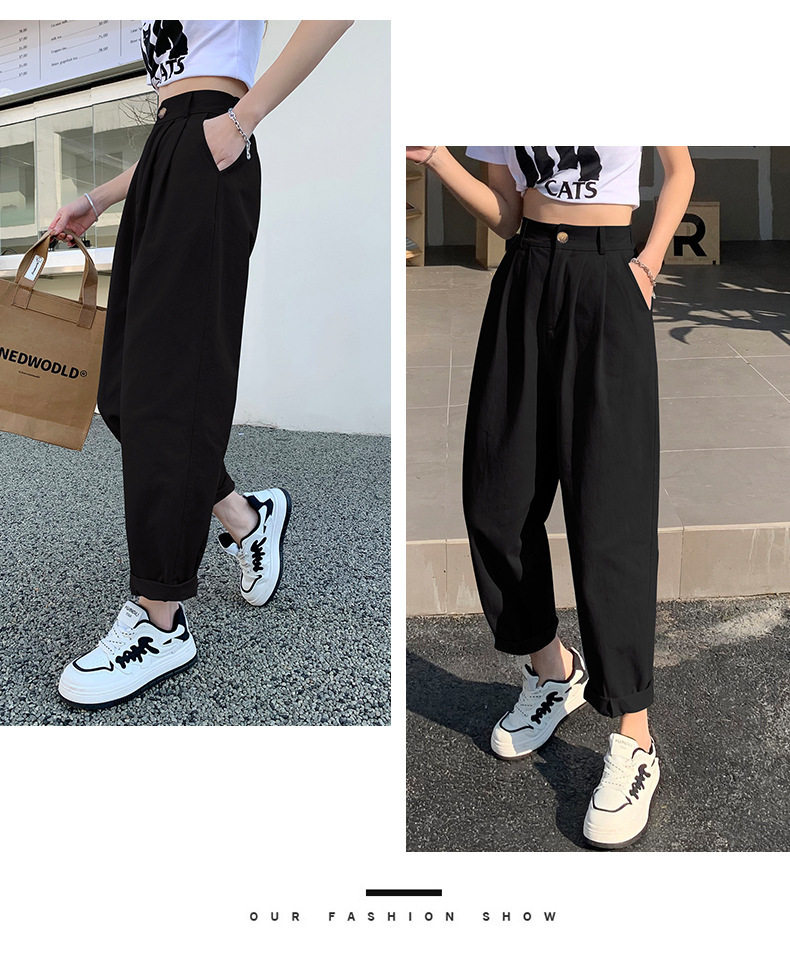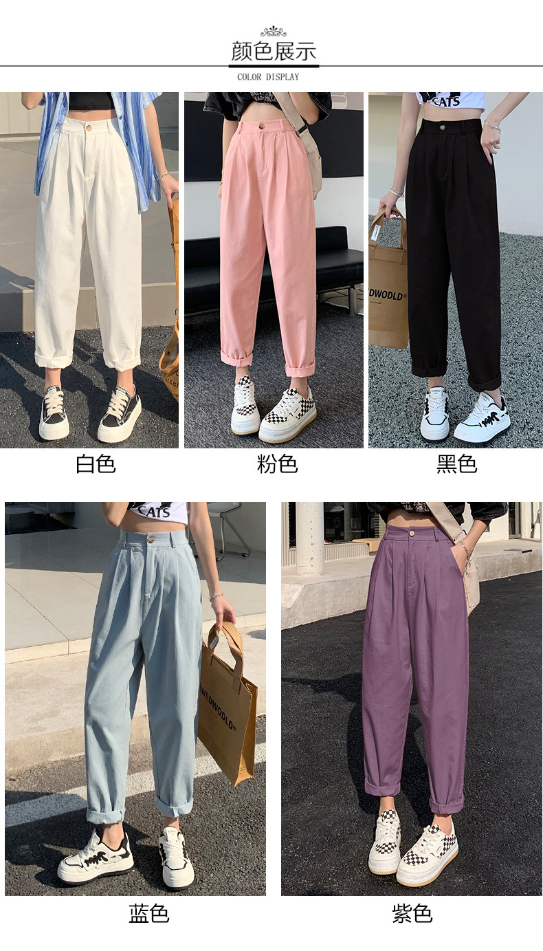 日杂风紫色棉麻休闲阔腿裤女秋新款宽松显瘦直筒九分裤哈伦萝卜裤