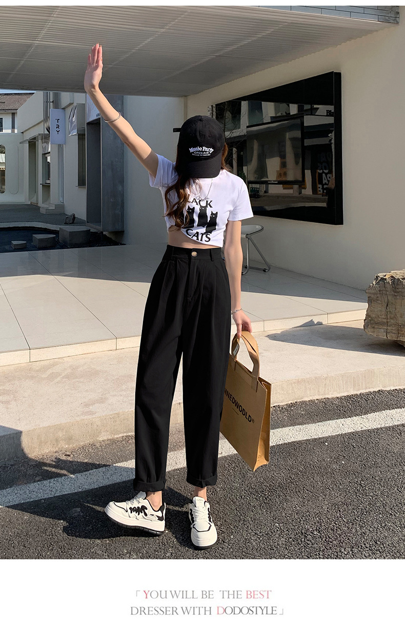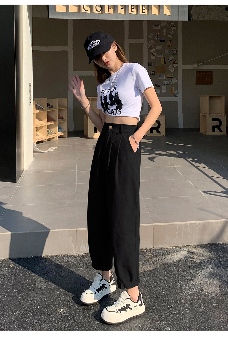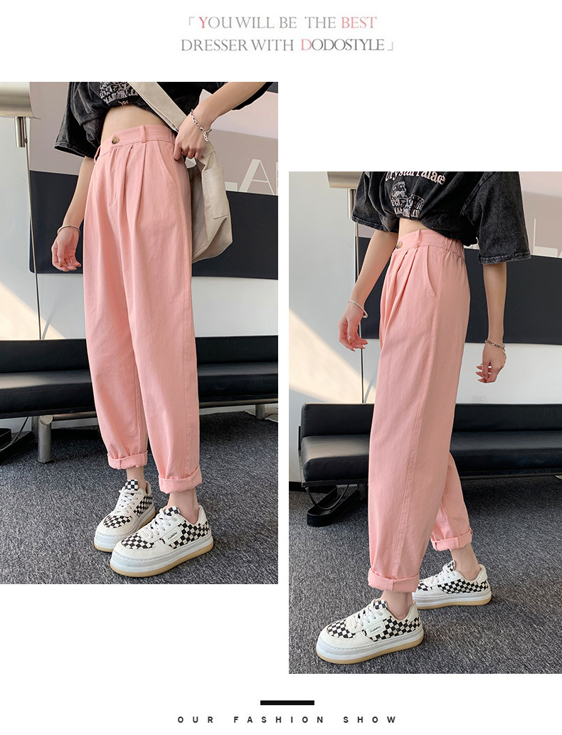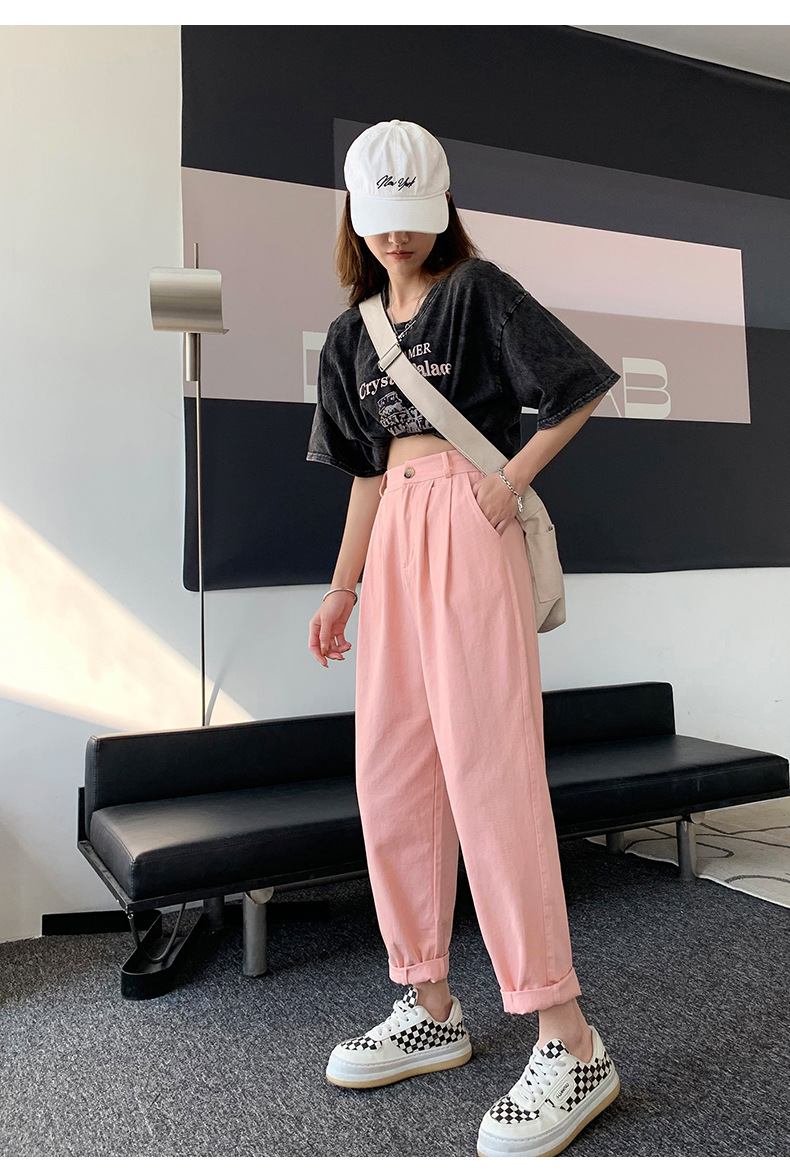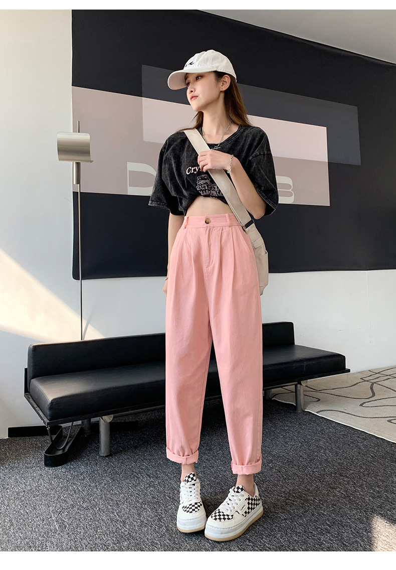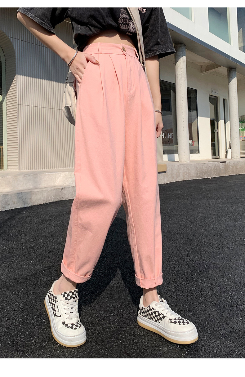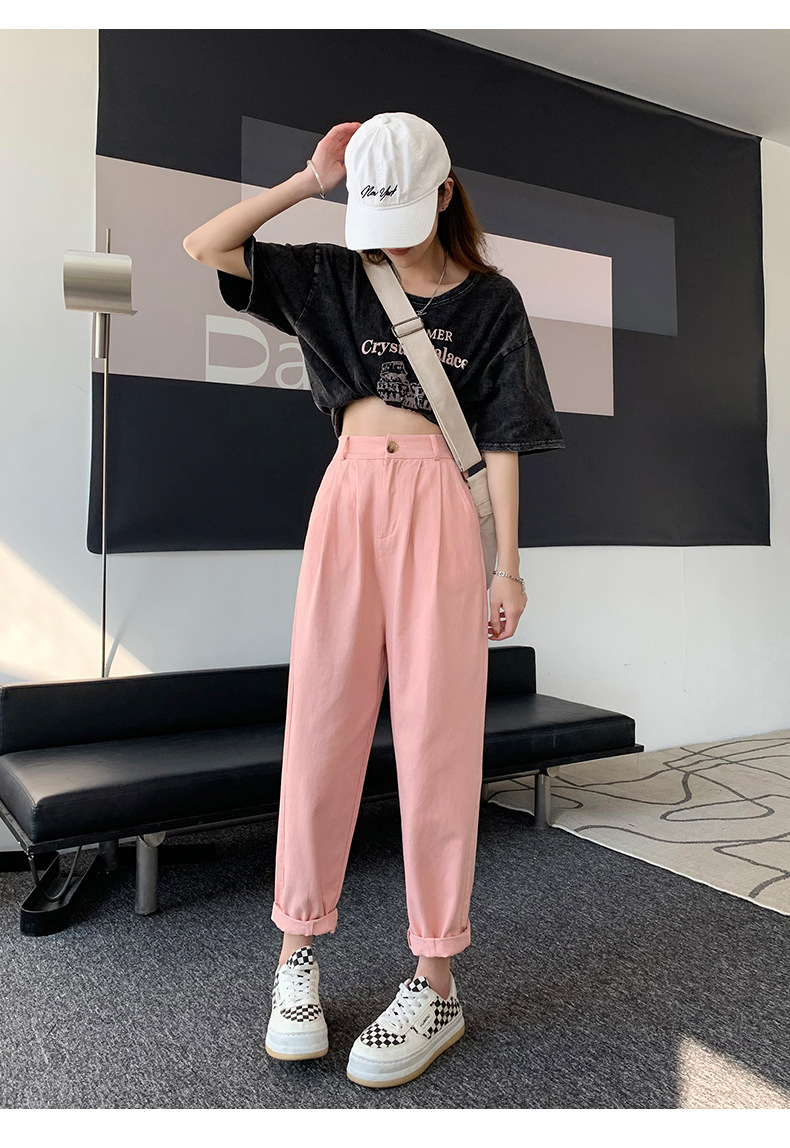 日杂风紫色棉麻休闲阔腿裤女秋新款宽松显瘦直筒九分裤哈伦萝卜裤