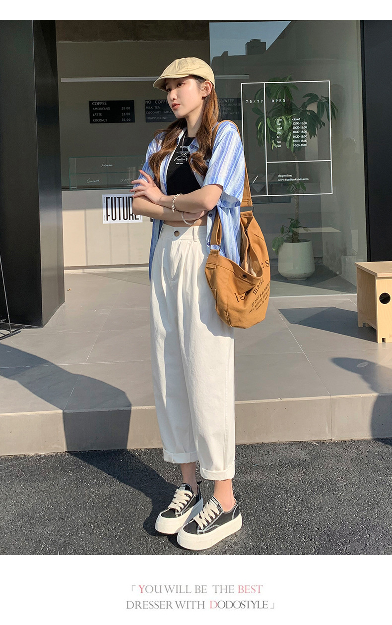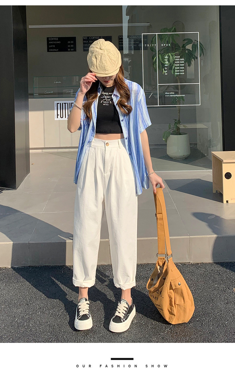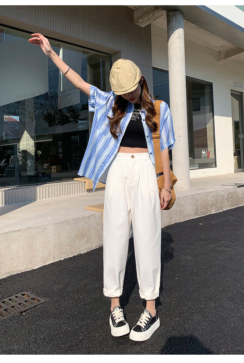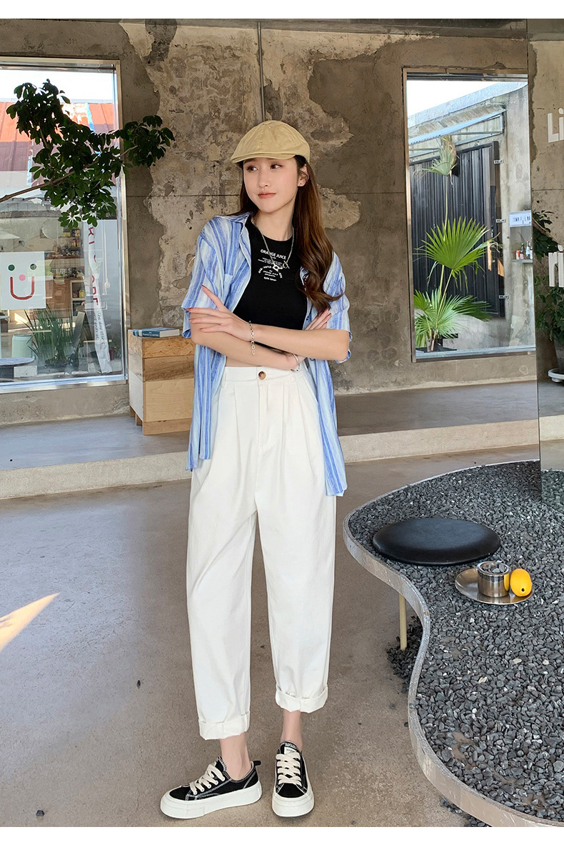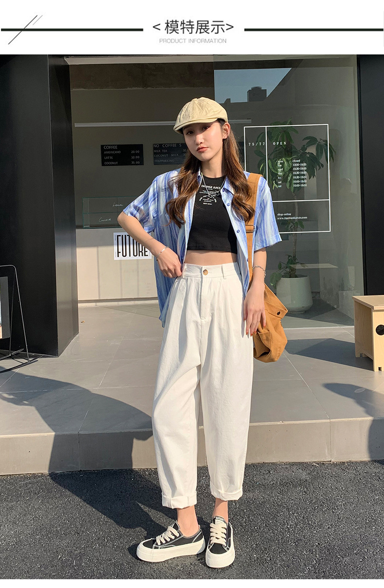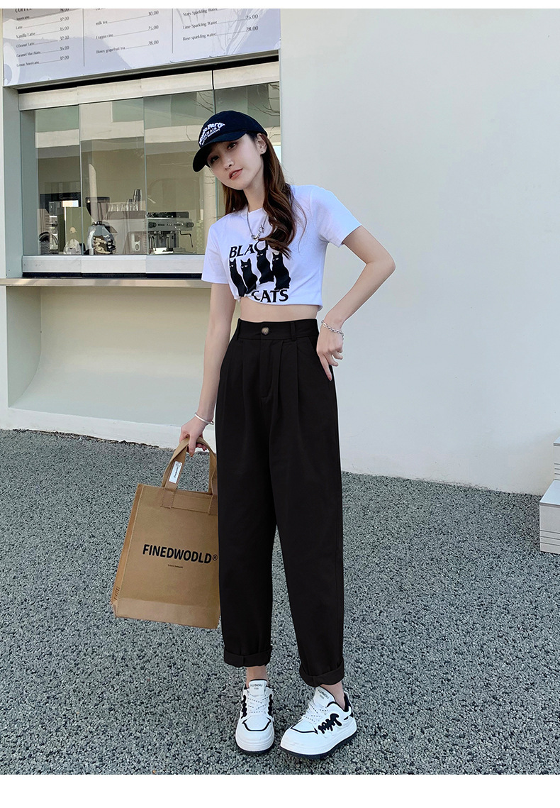 日杂风紫色棉麻休闲阔腿裤女秋新款宽松显瘦直筒九分裤哈伦萝卜裤