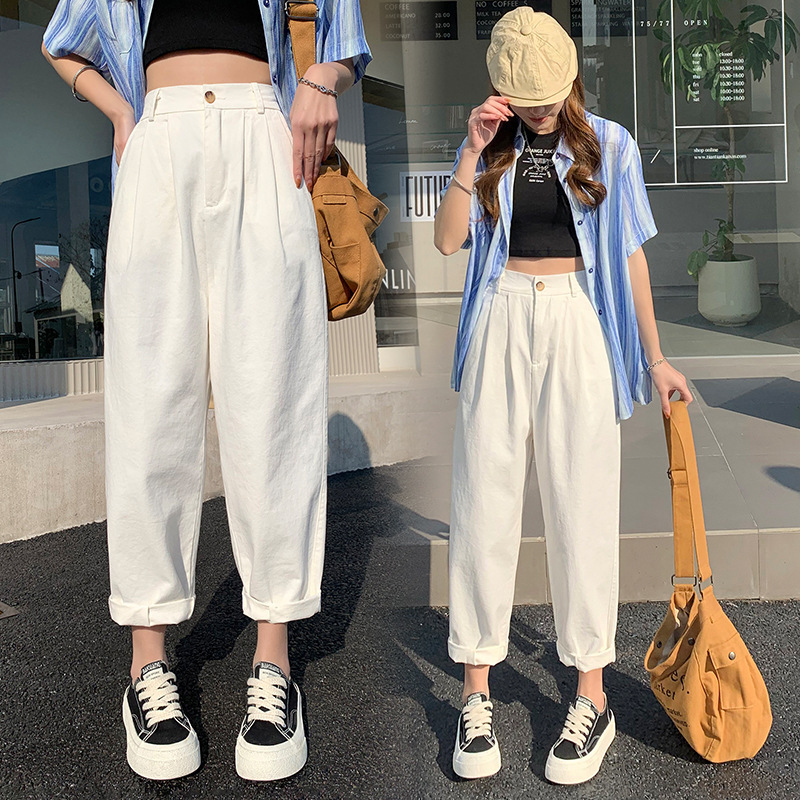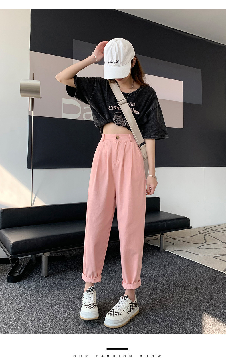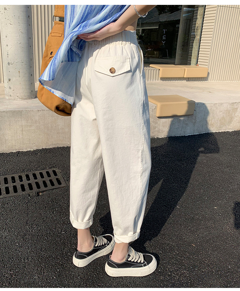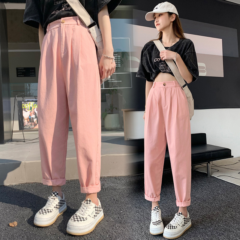 일본 스타일 퍼플 코튼 리넨 캐주얼 와이드 레그 팬츠 여성의 가을 새로운 느슨한 슬리밍 스트레이트 발목 길이 팬츠 할란 당근 바지스토어 가기