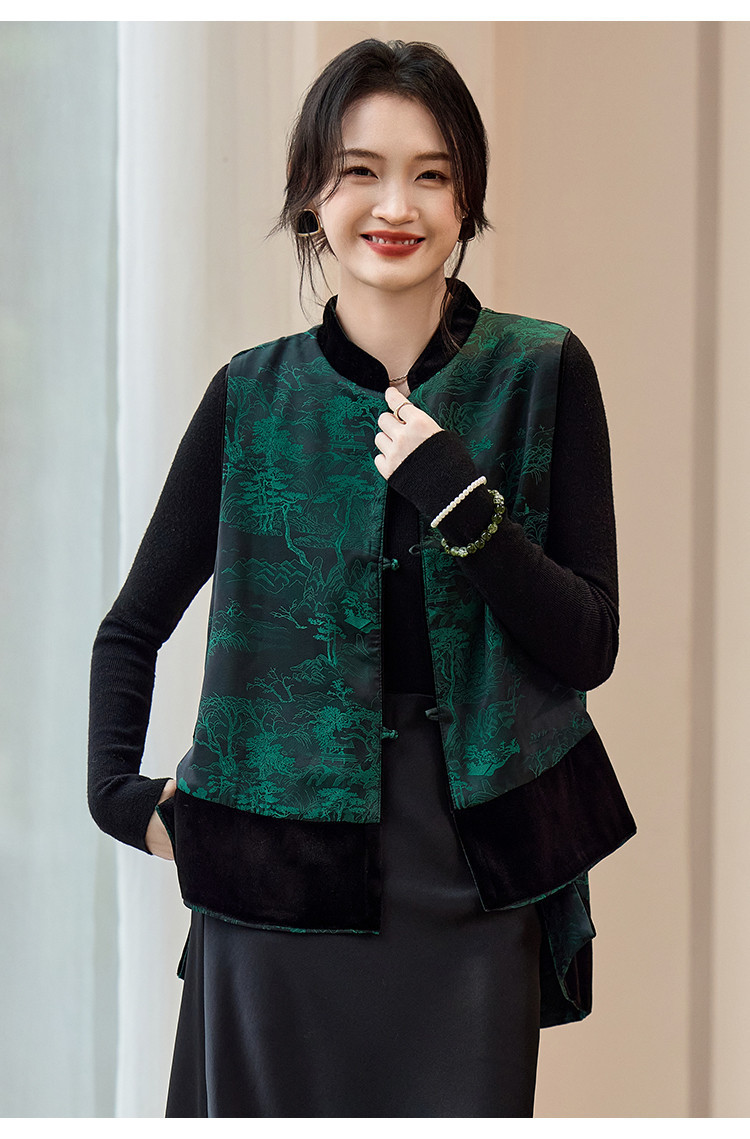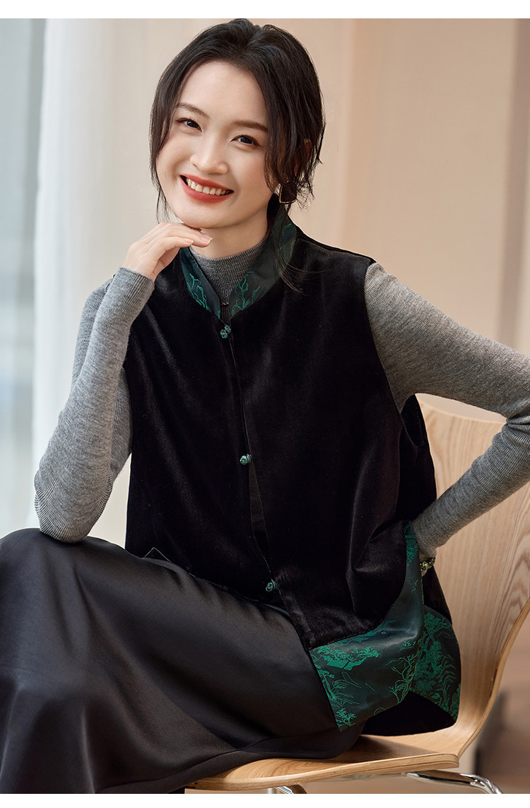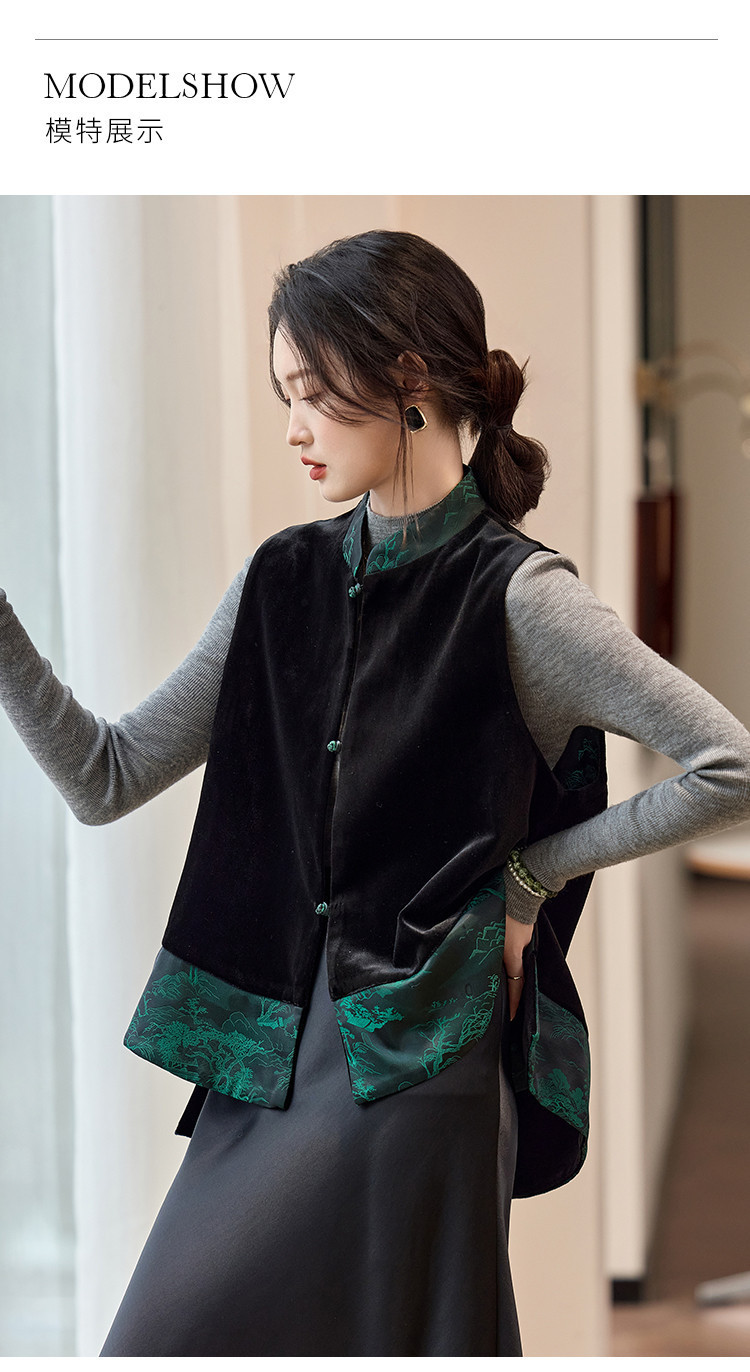 Guofeng 레트로 우아한 양면 조끼 착용 여성 봄과 가을 민소매 탑 유행 올매치 느슨한 슬림 조끼 외부 셔츠스토어 가기