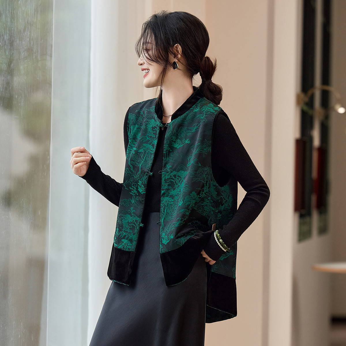 Guofeng 레트로 우아한 양면 조끼 착용 여성 봄과 가을 민소매 탑 유행 올매치 느슨한 슬림 조끼 외부 셔츠
