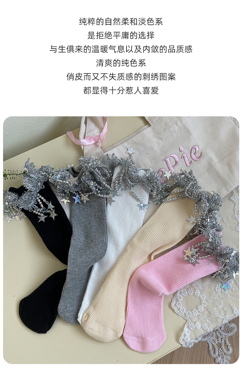 소녀 양말 봄과 가을 5 성급 트루 더블 바늘 어린이 대학 스타일 중간 길이 양말 한국식 소녀 아기 롱 튜브
