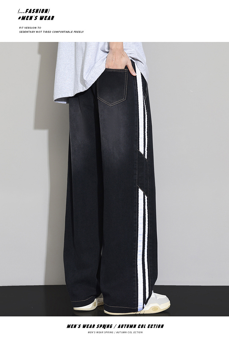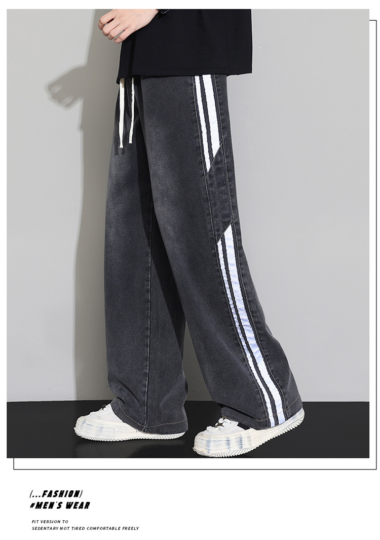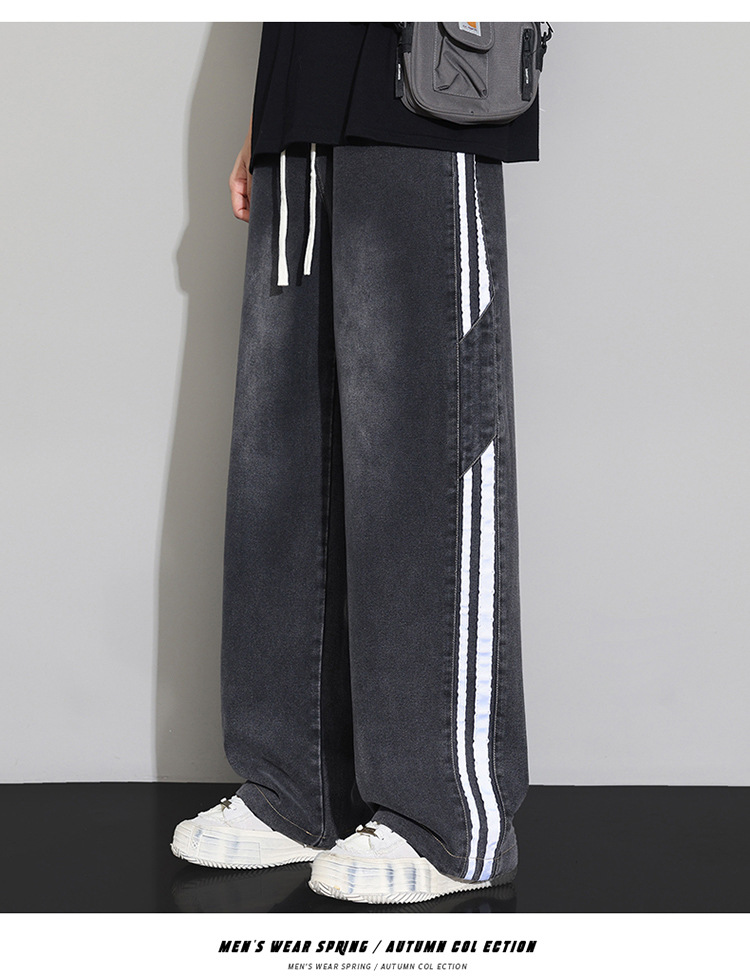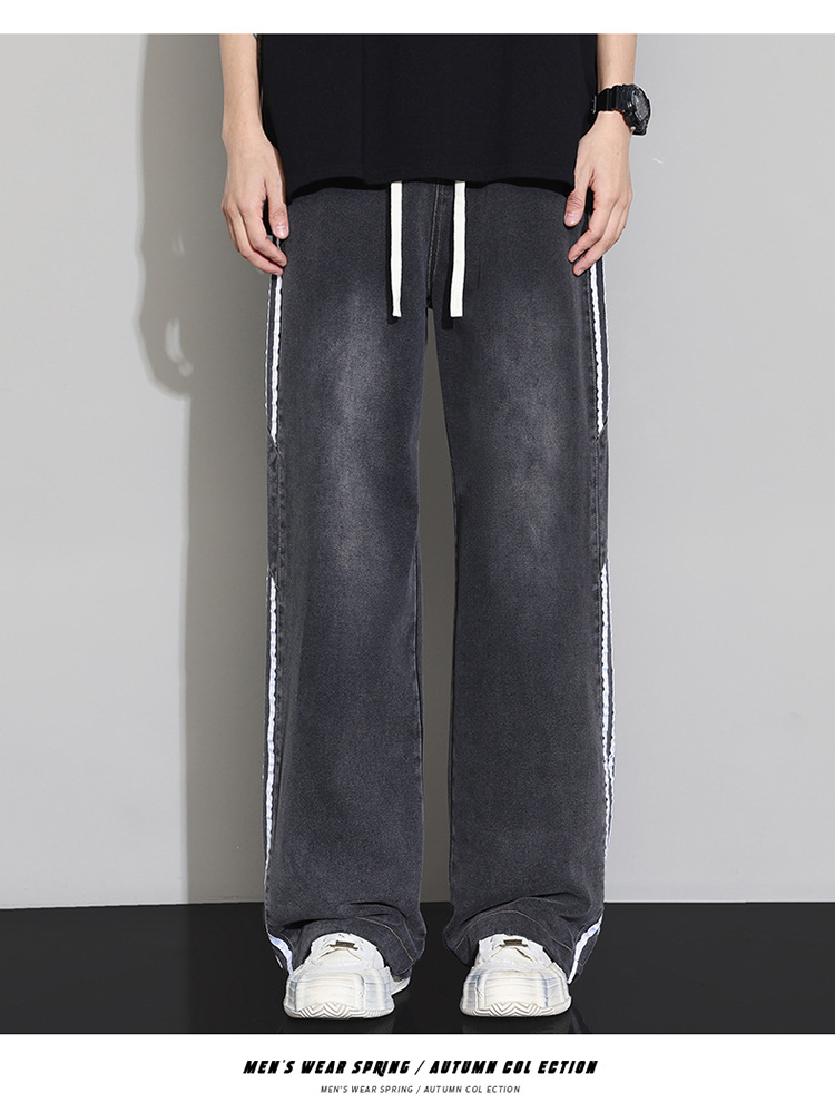 2025 봄 새로운 회색 캐주얼 바지 남자의 느슨한 스트레이트 넓은 다리 바지 유행 유행 브랜드 올 매치 긴 바지 남자스토어 가기