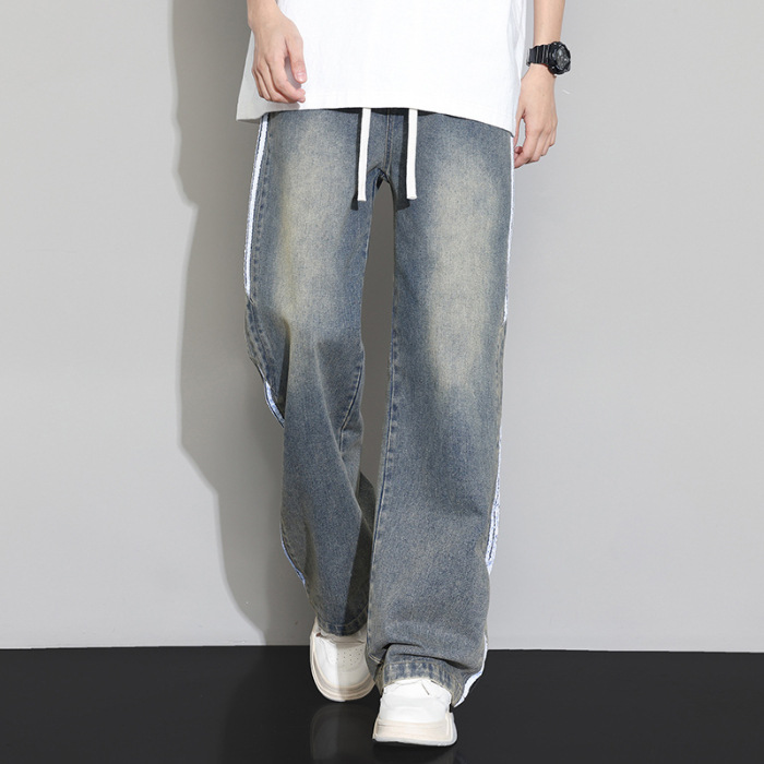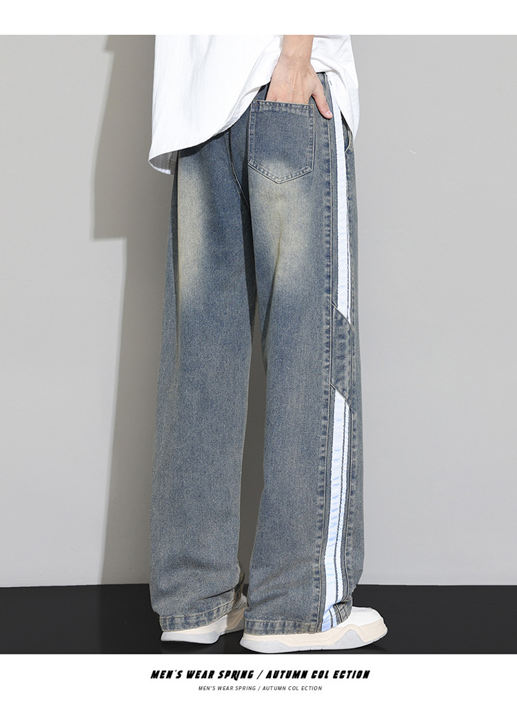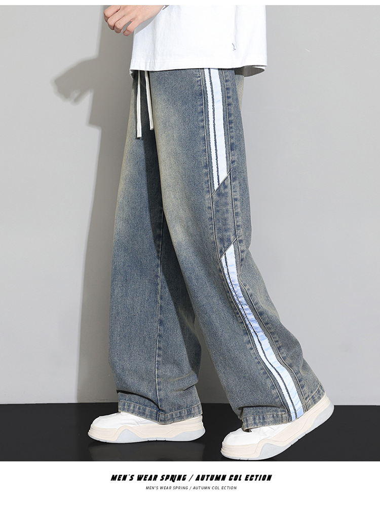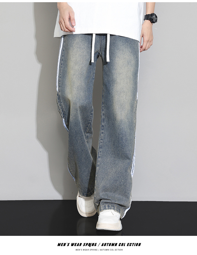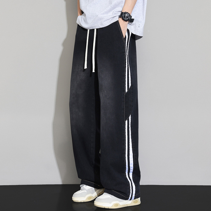 2025 봄 새로운 회색 캐주얼 바지 남자의 느슨한 스트레이트 넓은 다리 바지 유행 유행 브랜드 올 매치 긴 바지 남자스토어 가기
