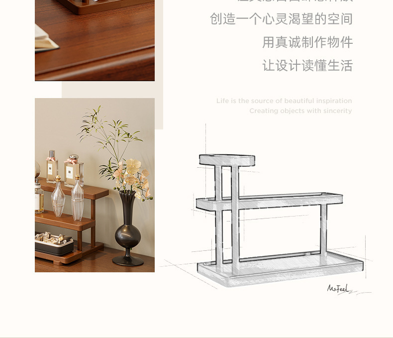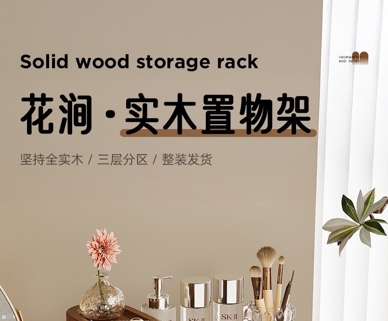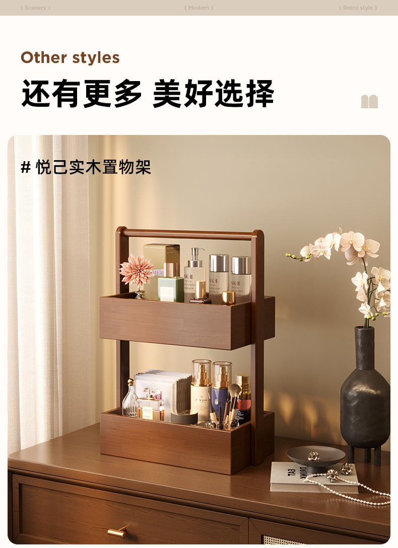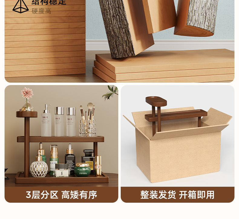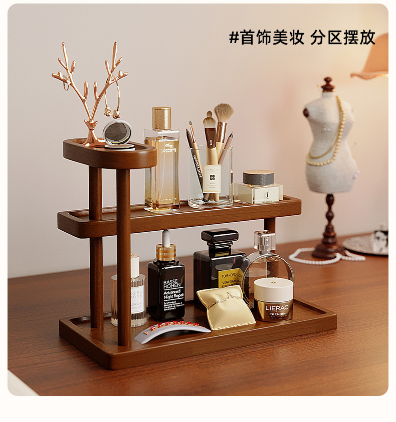 化妆品收纳盒桌面香水口红置物架轻奢多层实木护肤品首饰收纳架子