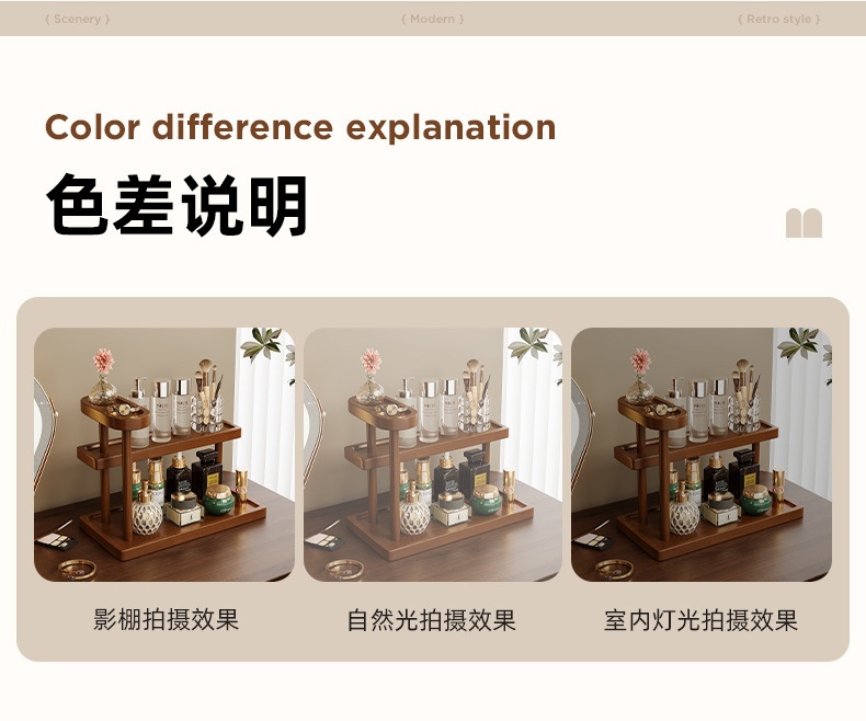 화장품 스토리지 박스 데스크탑 향수 립스틱 스토리지 랙 라이트 럭셔리 멀티 레이어 솔리드 우드 스킨 케어 쥬얼리 스토리지 랙