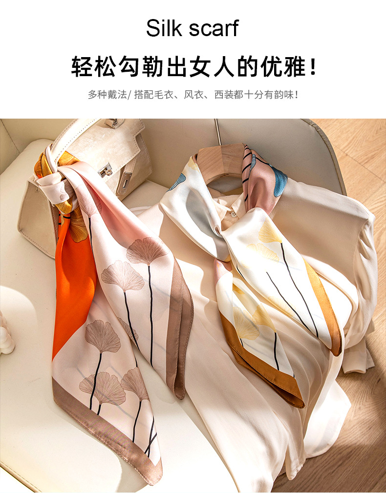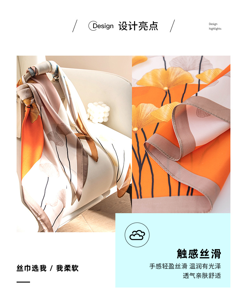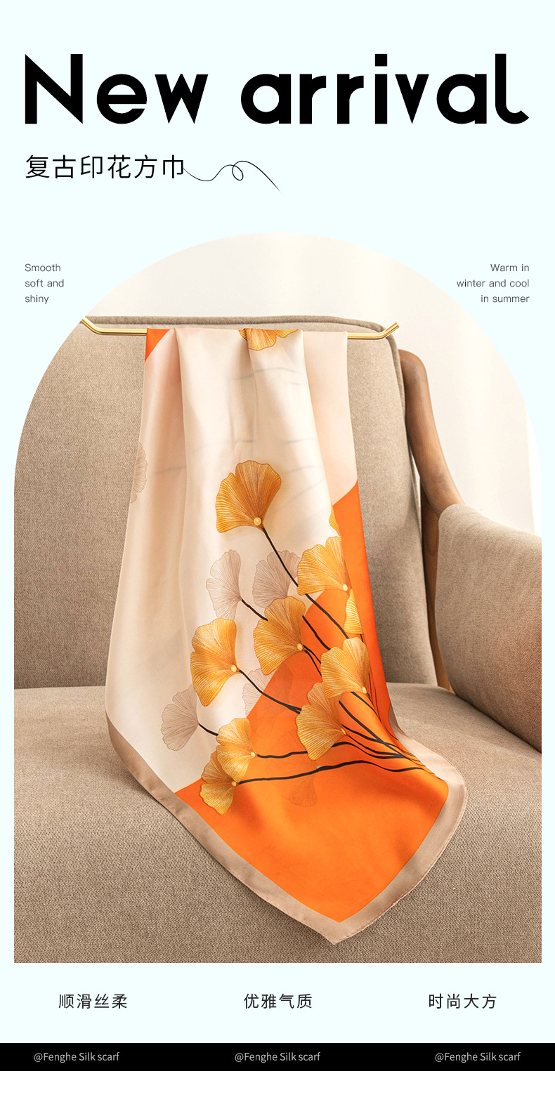 봄과 여름 2025 실크 목도리 달콤한 패치 워크 오렌지 스카프 고급 센스 70 스퀘어 스카프 목스토어 가기