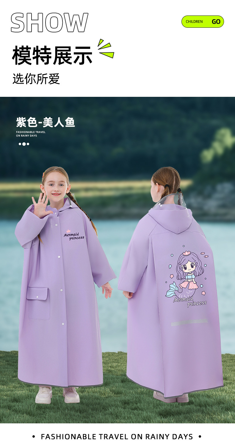 초등 및 중등 학교 학생을위한 어린이 비옷 소년 소녀를위한 특별 어린이 스트랩 백 전신 긴 폭동 방지 비 판초