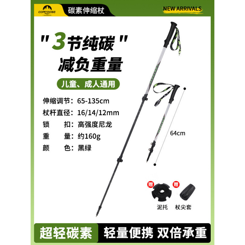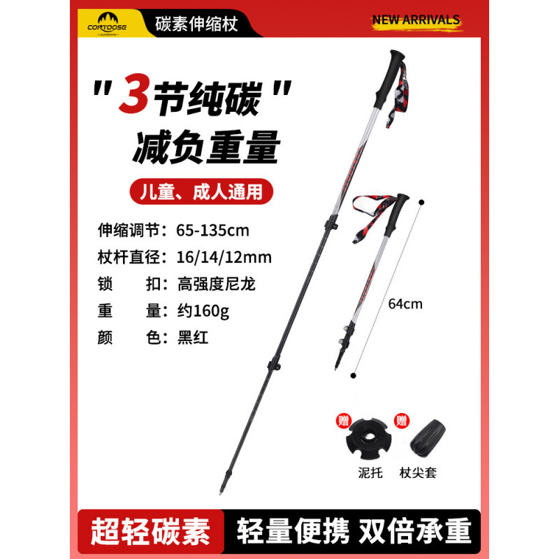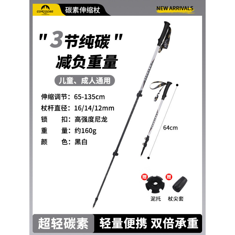 야외 탄소 망원경 전문 하이킹 등반 스틱 초경량 3 섹션 외부 잠금 탄소 섬유 등반 스틱 망원경스토어 가기