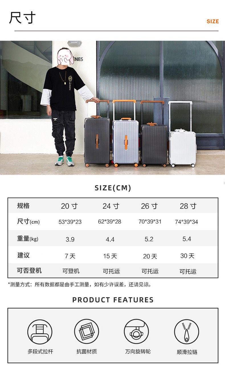 기도 하이 엔드 와이드 타이로드 수하물 여성 유니버설 휠 음소거 20 인치 탑승 상자 알루미늄 프레임 가방 pc 남성스토어 가기