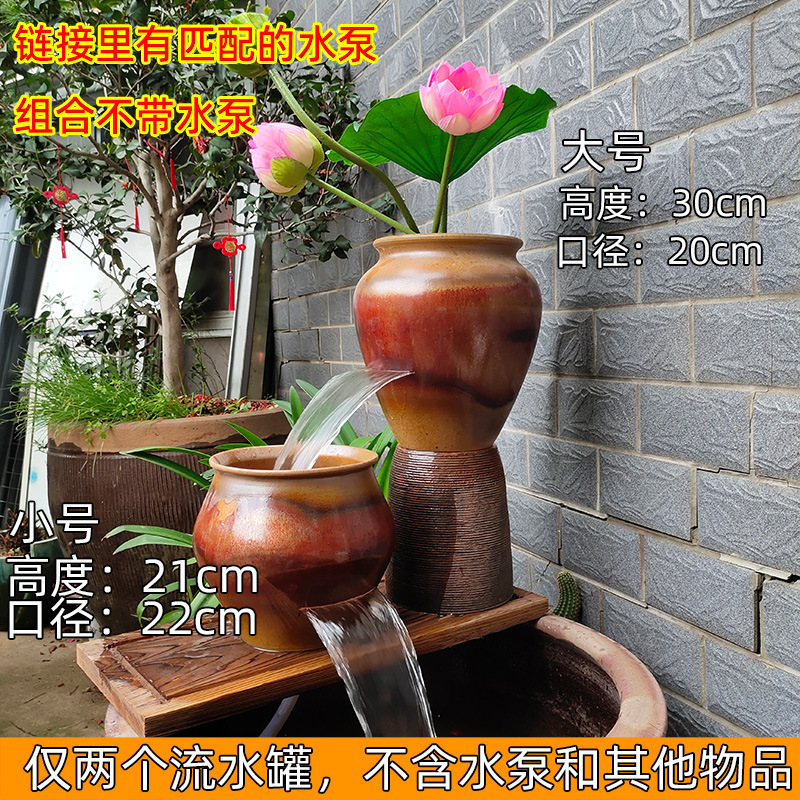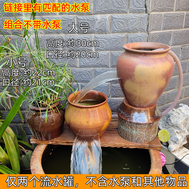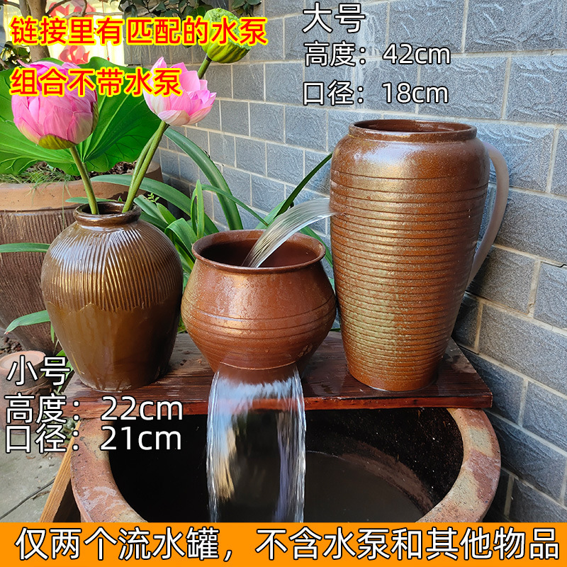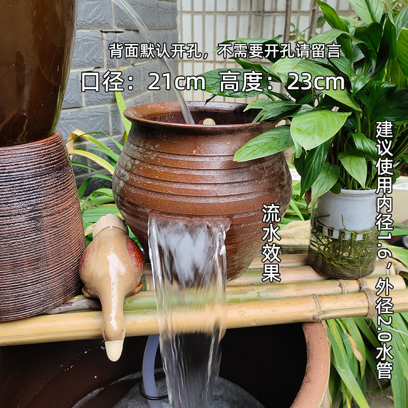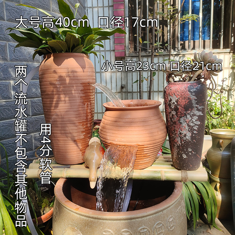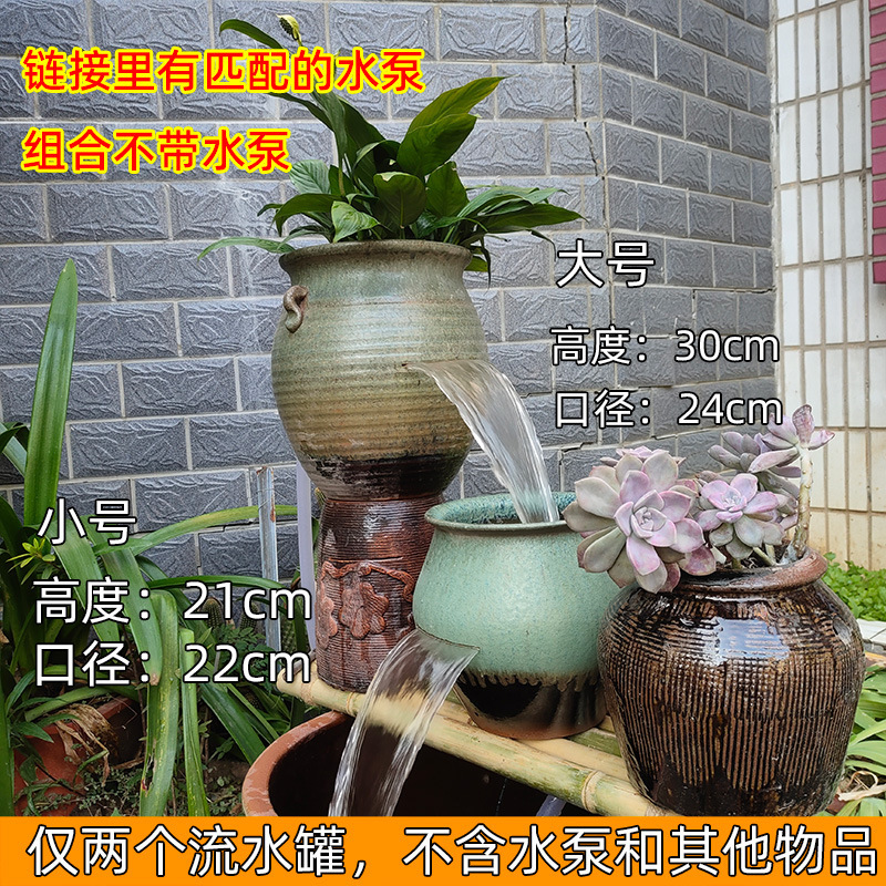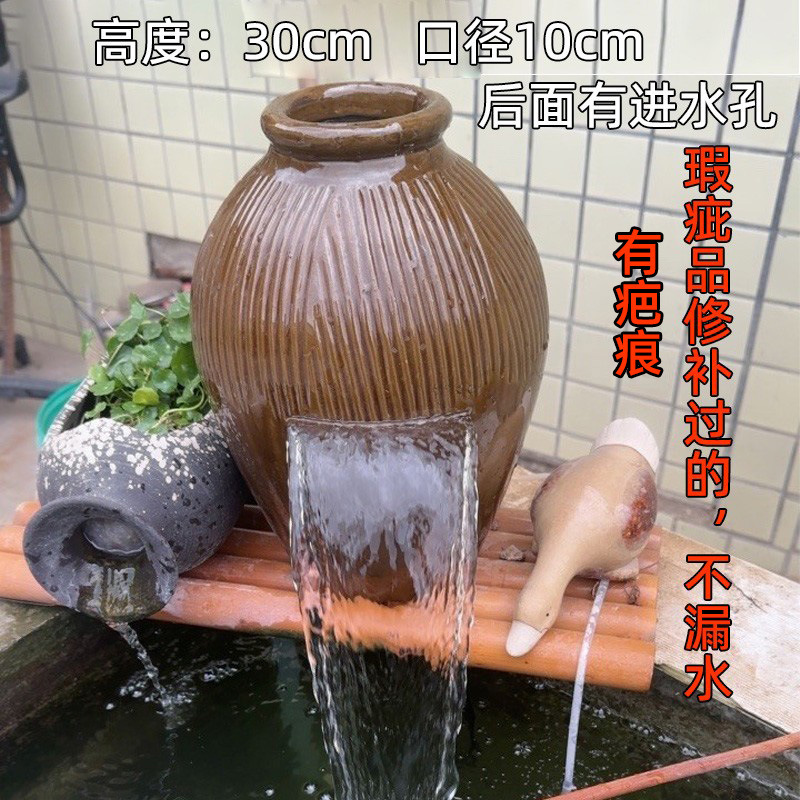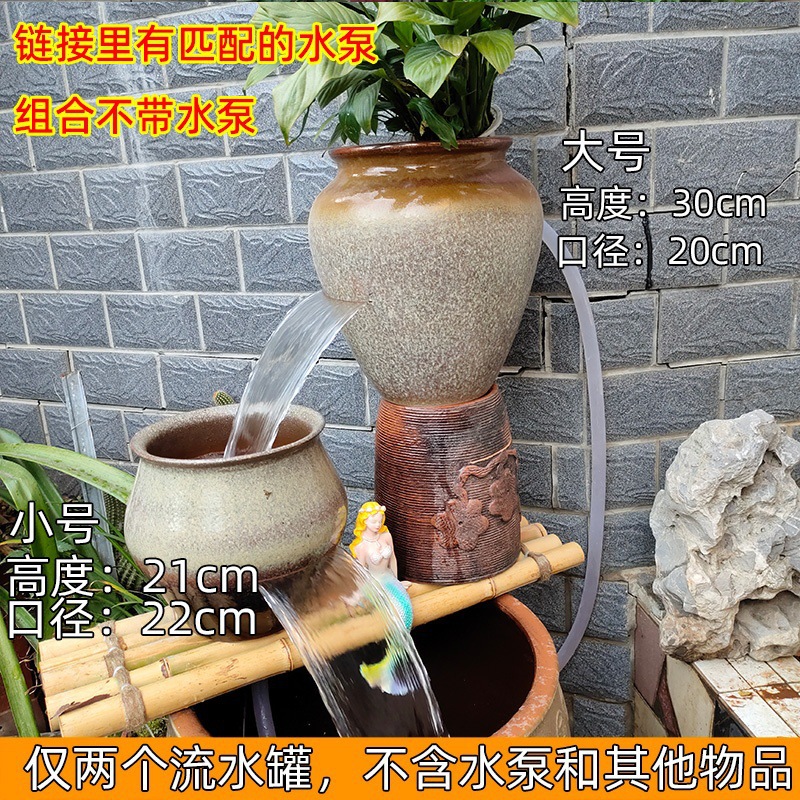 집들이 생태 물고기 탱크 흐르는 물 점토 냄비 흐르는 물 실내 창조적 인 새 집 장식품 순환 안뜰 물고기 문화 방법 고대 조경스토어 가기
