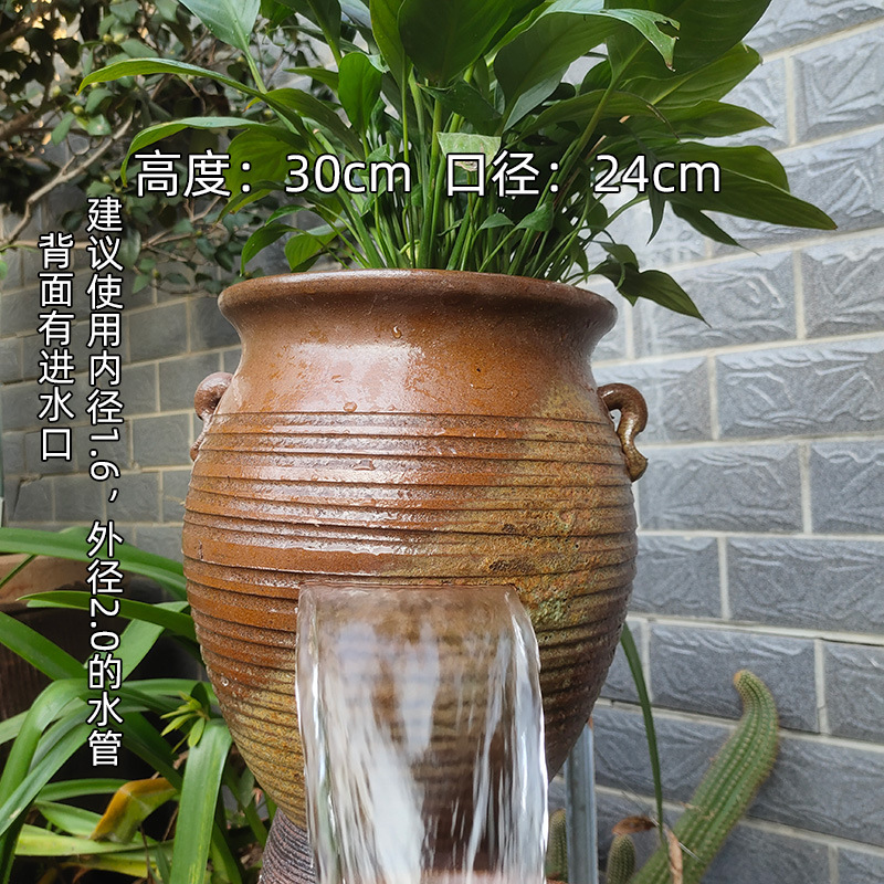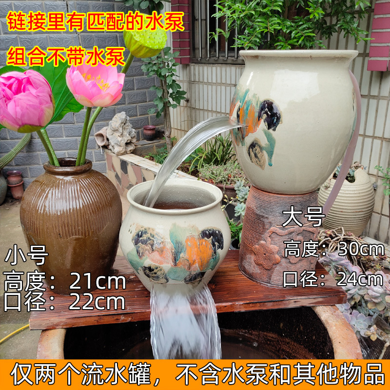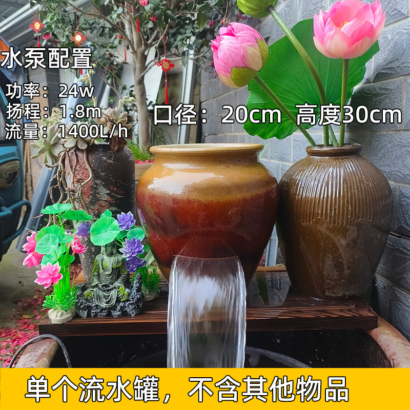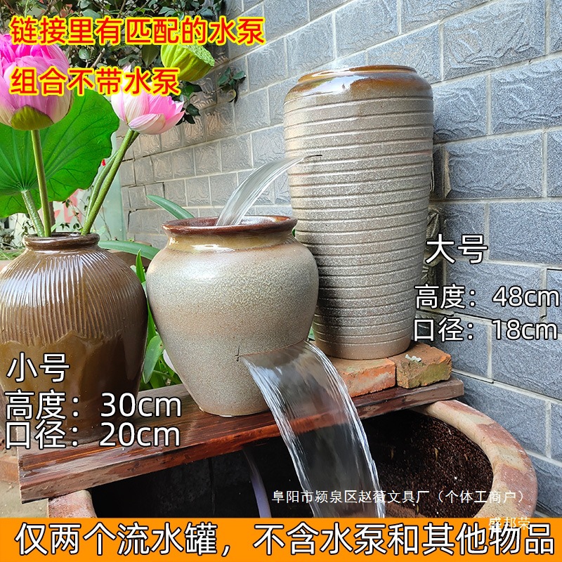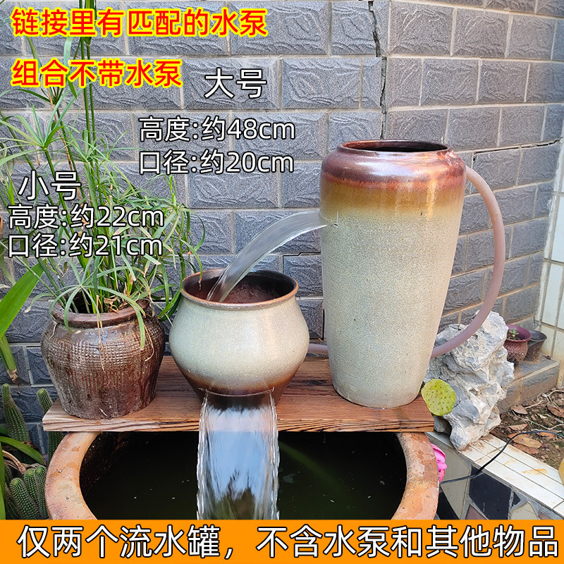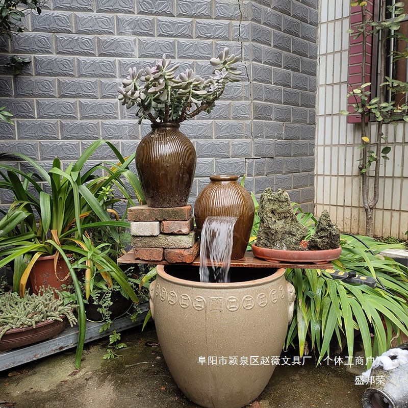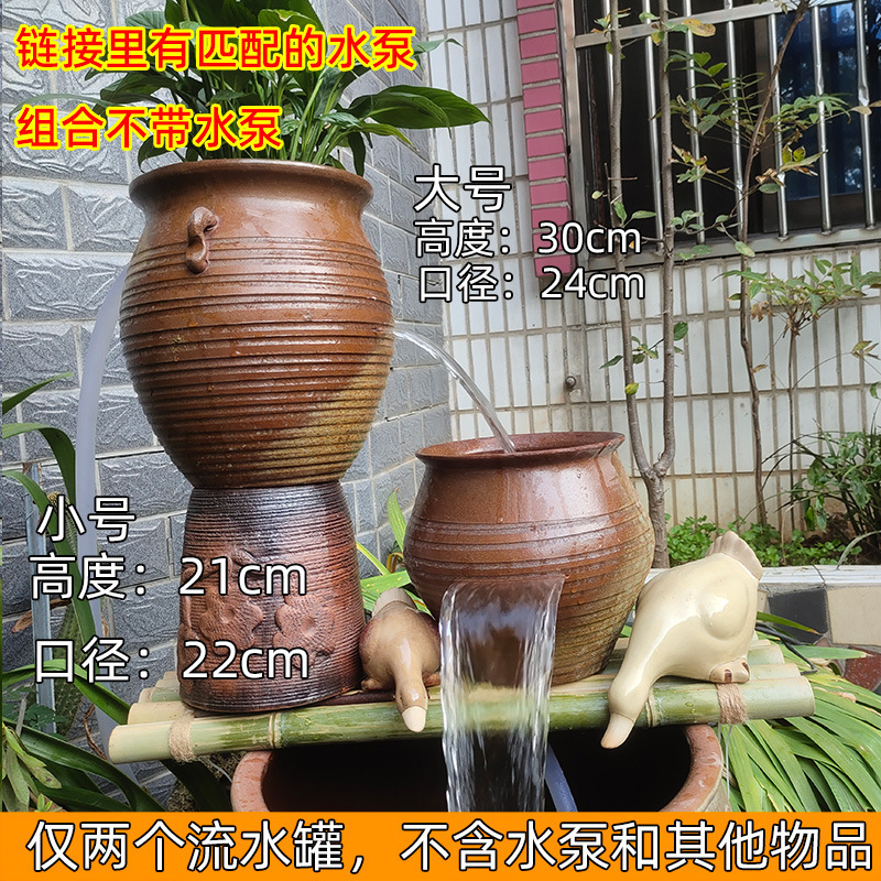 집들이 생태 물고기 탱크 흐르는 물 점토 냄비 흐르는 물 실내 창조적 인 새 집 장식품 순환 안뜰 물고기 문화 방법 고대 조경스토어 가기