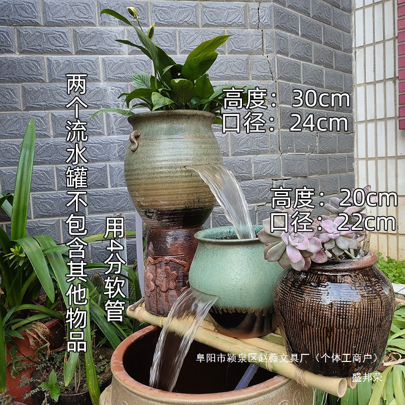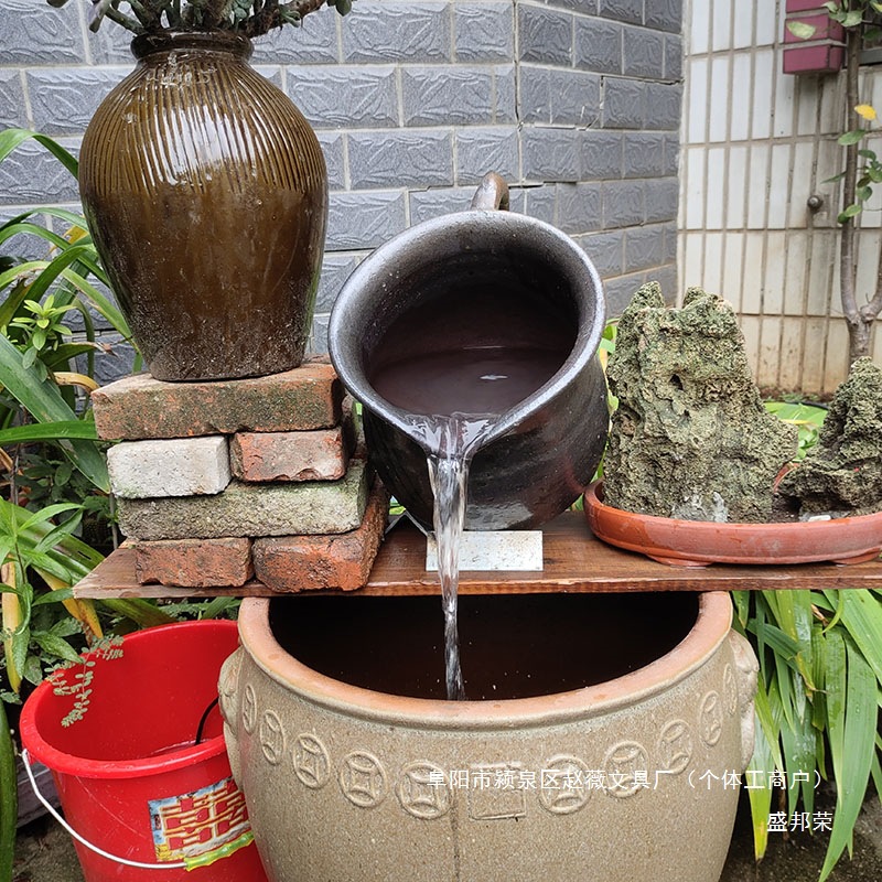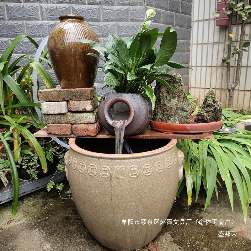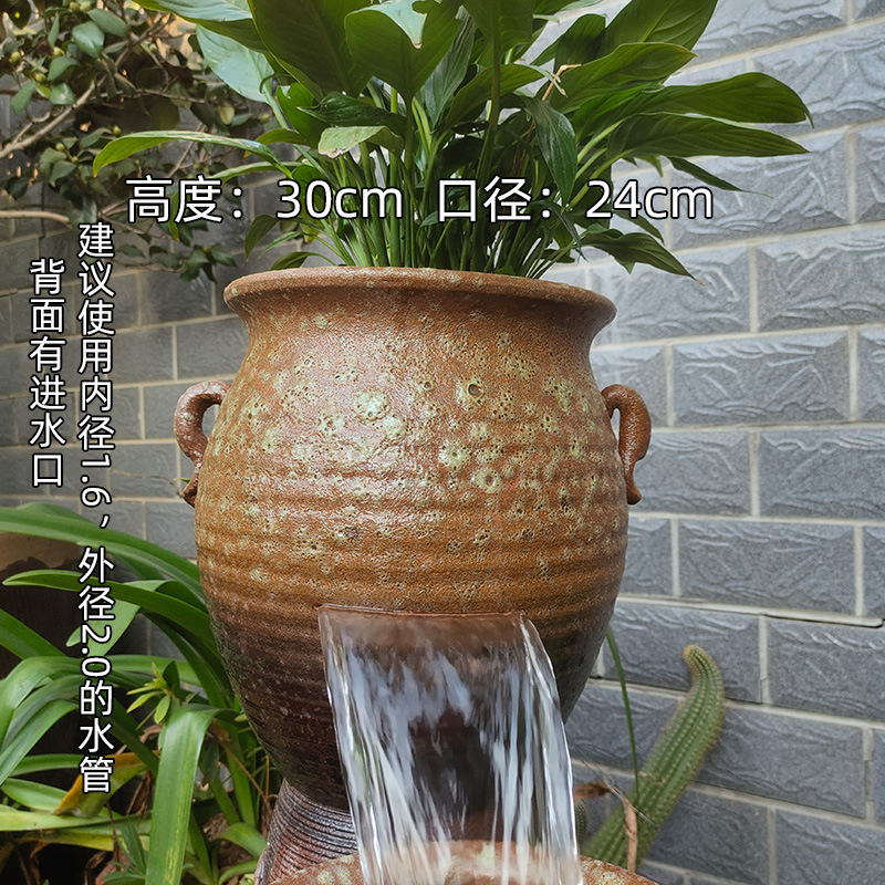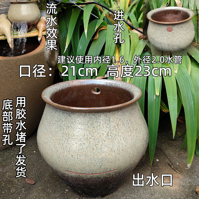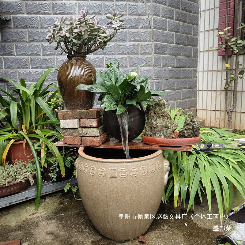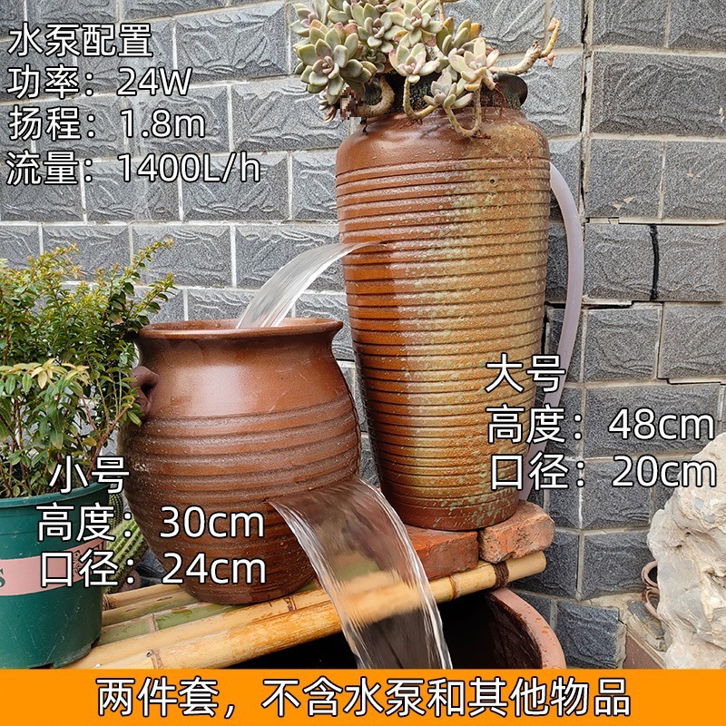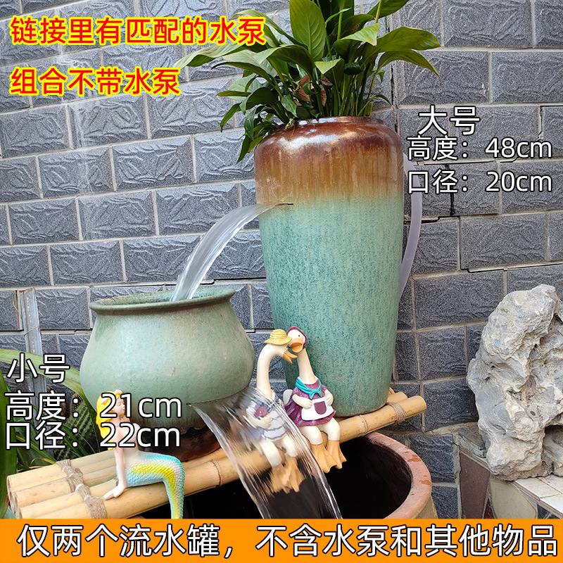 집들이 생태 물고기 탱크 흐르는 물 점토 냄비 흐르는 물 실내 창조적 인 새 집 장식품 순환 안뜰 물고기 문화 방법 고대 조경스토어 가기