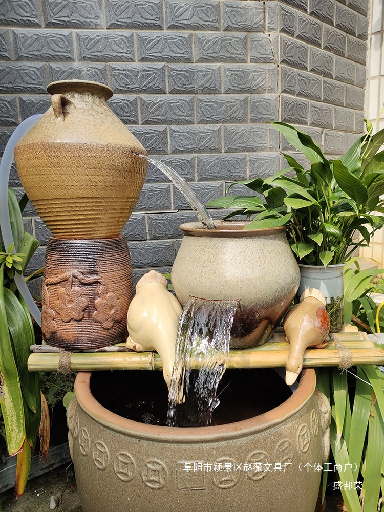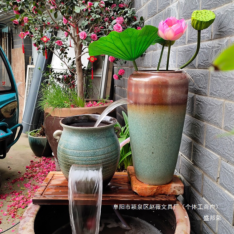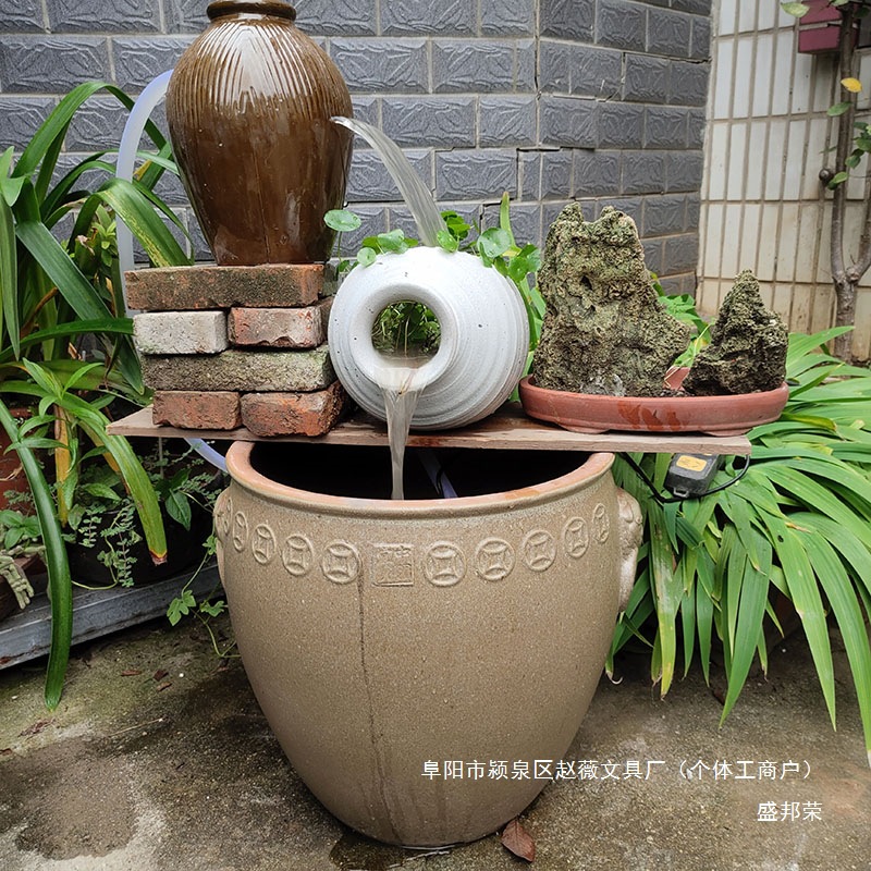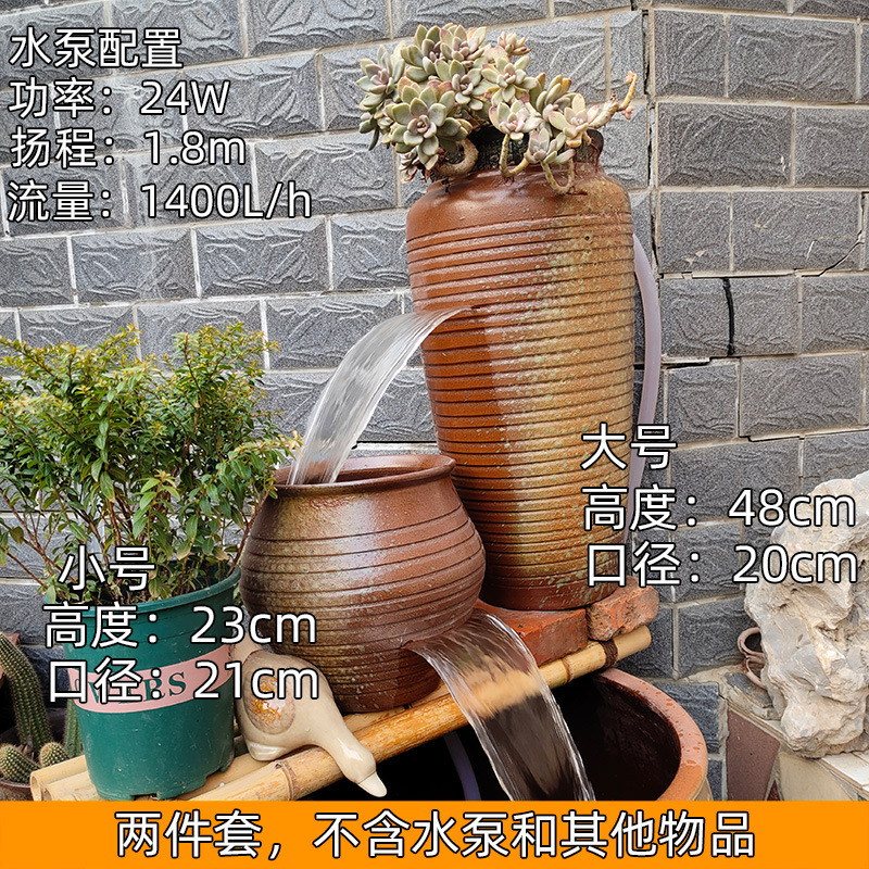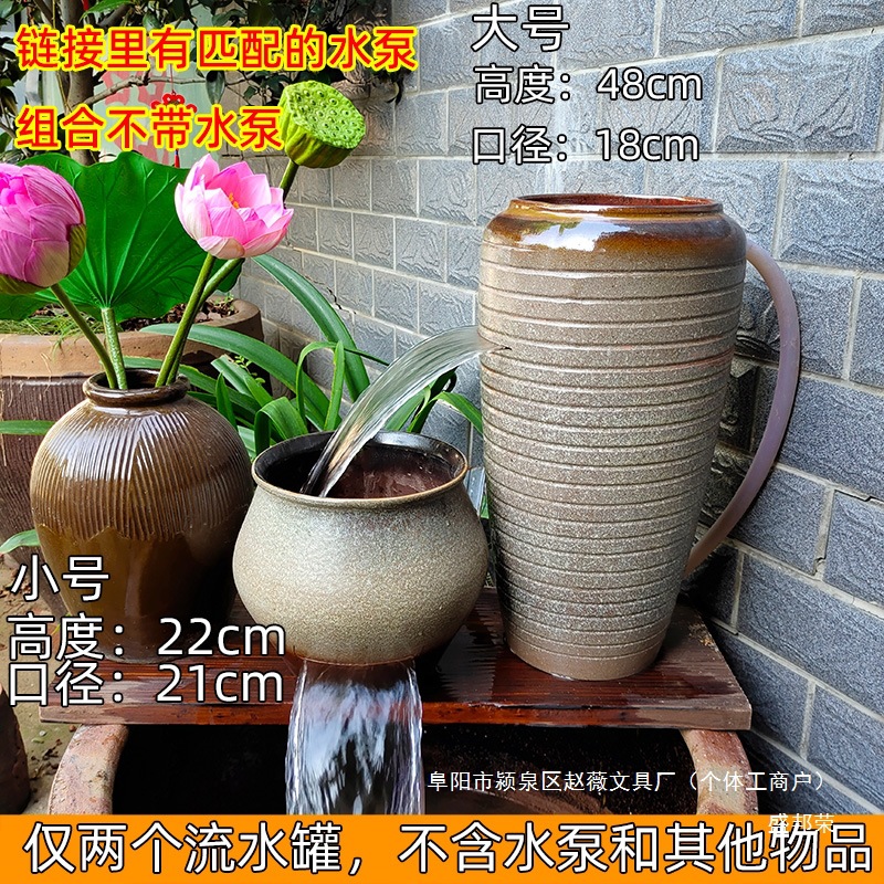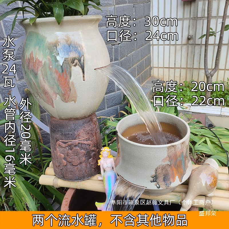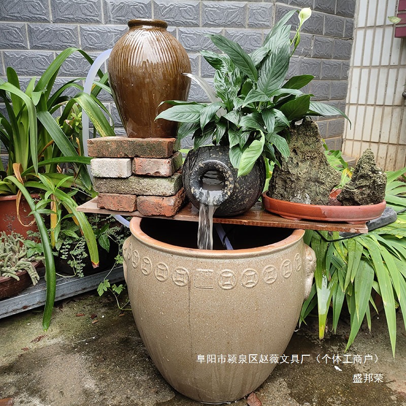집들이 생태 물고기 탱크 흐르는 물 점토 냄비 흐르는 물 실내 창조적 인 새 집 장식품 순환 안뜰 물고기 문화 방법 고대 조경스토어 가기