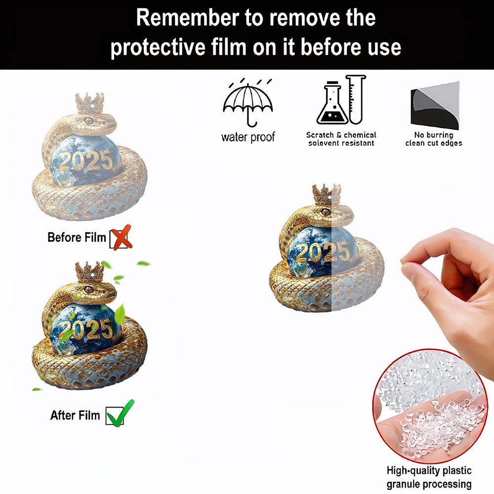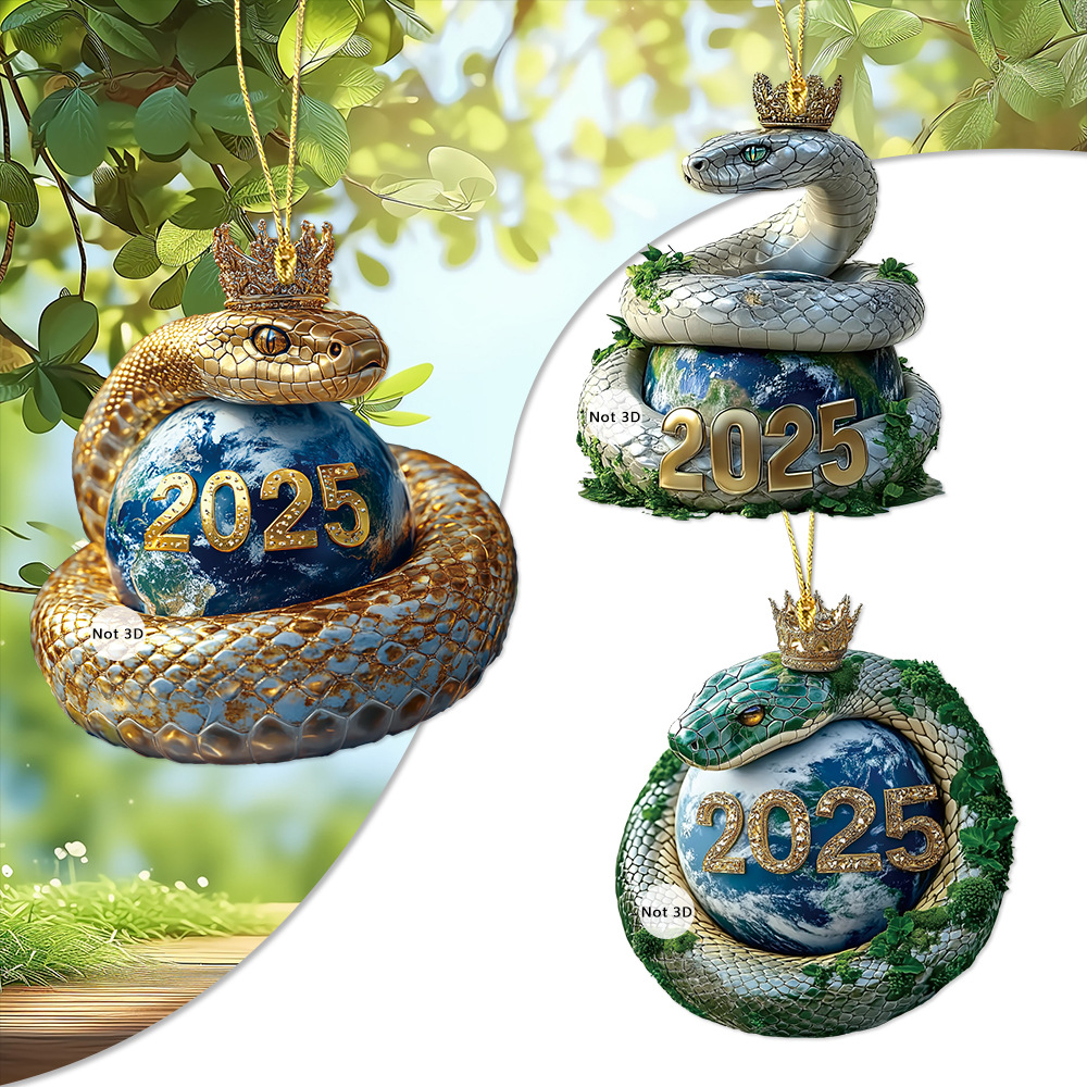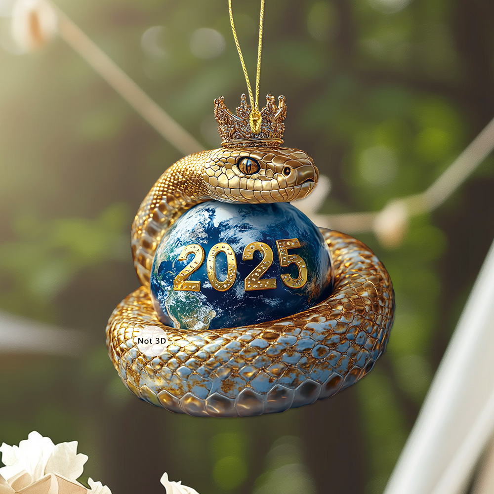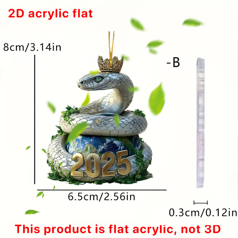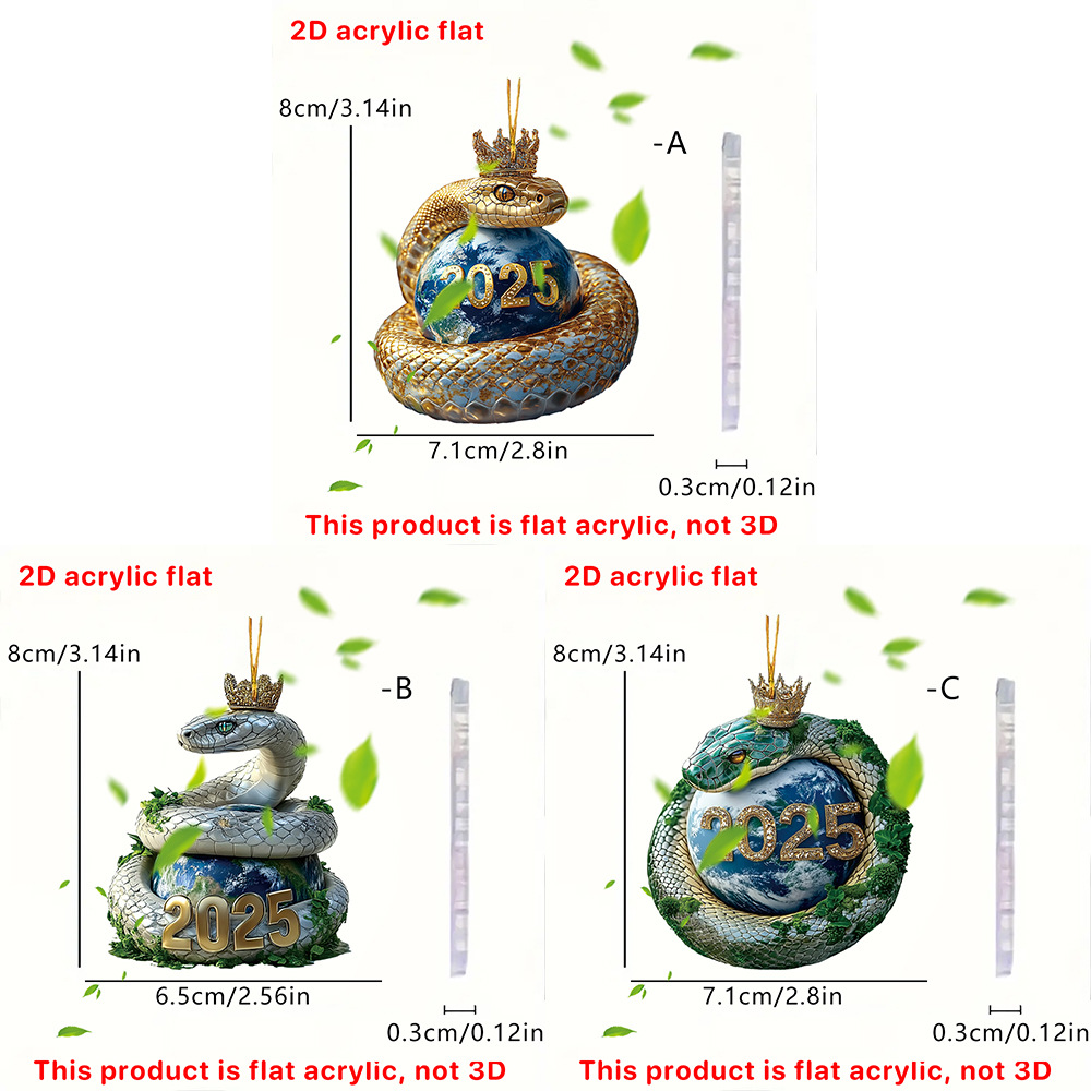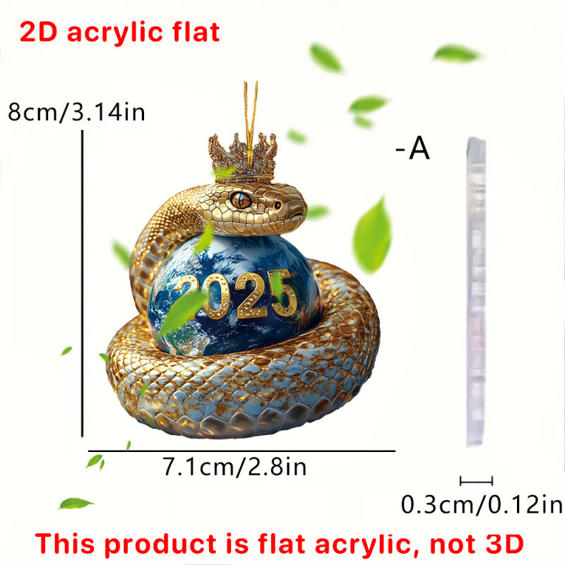 아마존 새로운 2025 황금 뱀 크라운 아크릴 키 체인 자동차 백미러 액세서리 배낭 작은 펜던트