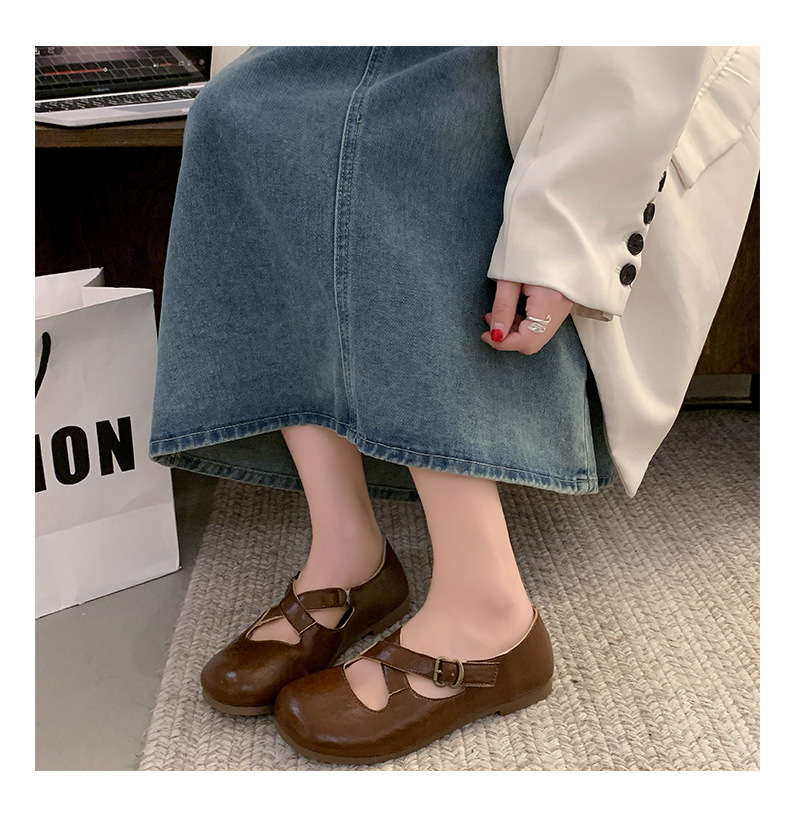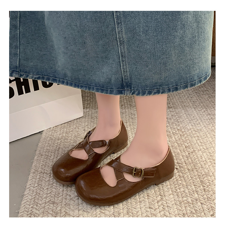 프랑스 스타일 우아한 얕은 입 부드러운 단독 신발 여성의 2025 봄과 가을 새로운 플랫 밀크 신발 편안한 복고풍 메리 제인 신발스토어 가기