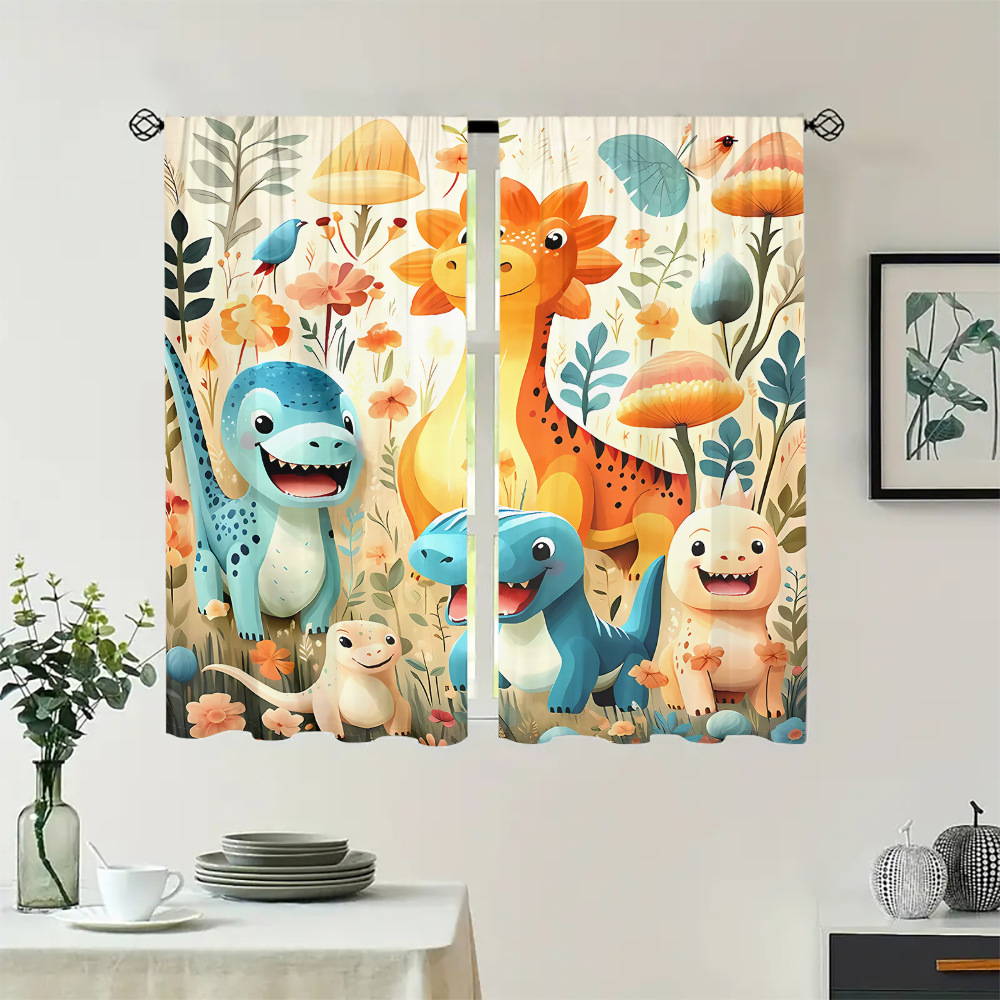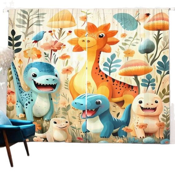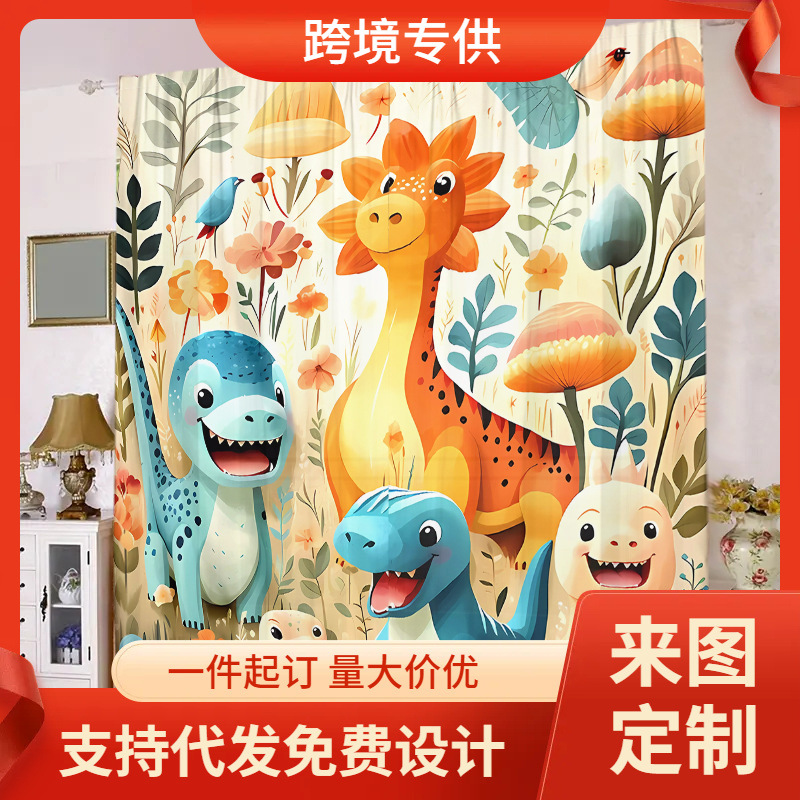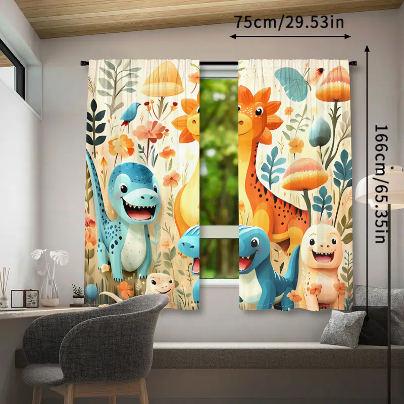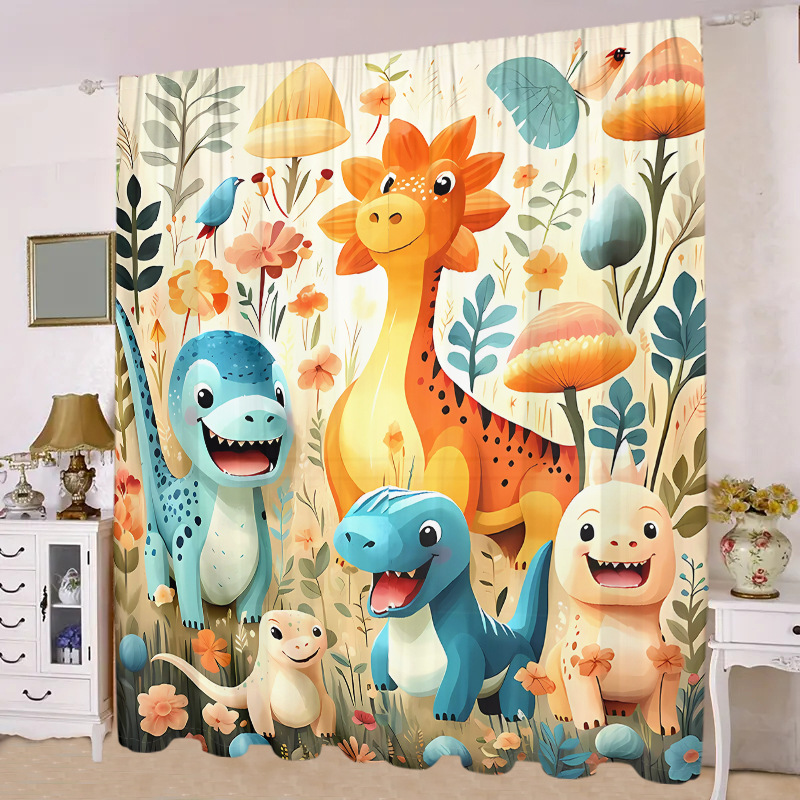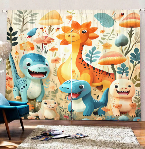 만화 애니메이션 작은 공룡 디지털 인쇄 커튼 어린이 방 아기 방 귀여운 패턴 커튼 두 조각 한 머리