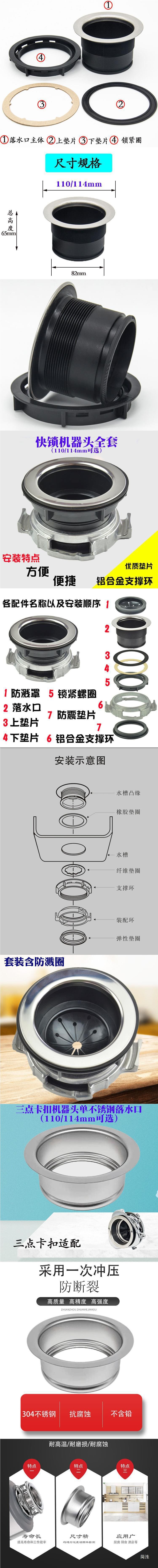 • 단일 배수구가 있는 110mm 퀵 잠금 머신 헤드