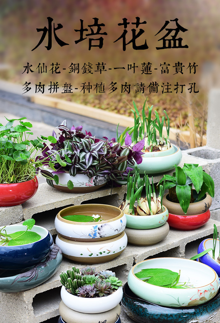 수선화 꽃 냄비 세라믹 큰 가정용 구리 돈 한 잎 연꽃 보울 연꽃 냄비 육체 수경 수경 백합 Zhao Zhisun스토어 가기