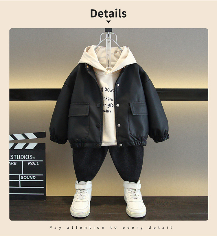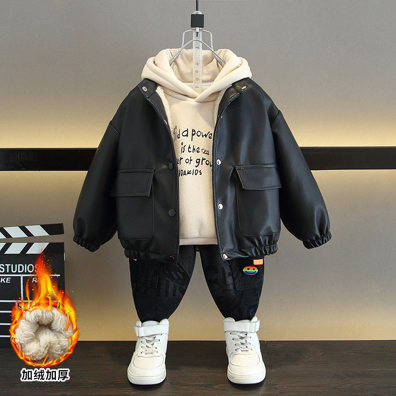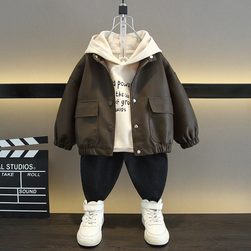 소년의 트렌디 한 세트 2025 가을과 겨울 새로운 어린이 루피 잘 생긴 어린이 외국 스타일 코트 두 남자의 보물 그물 붉은 튀김 거리스토어 가기