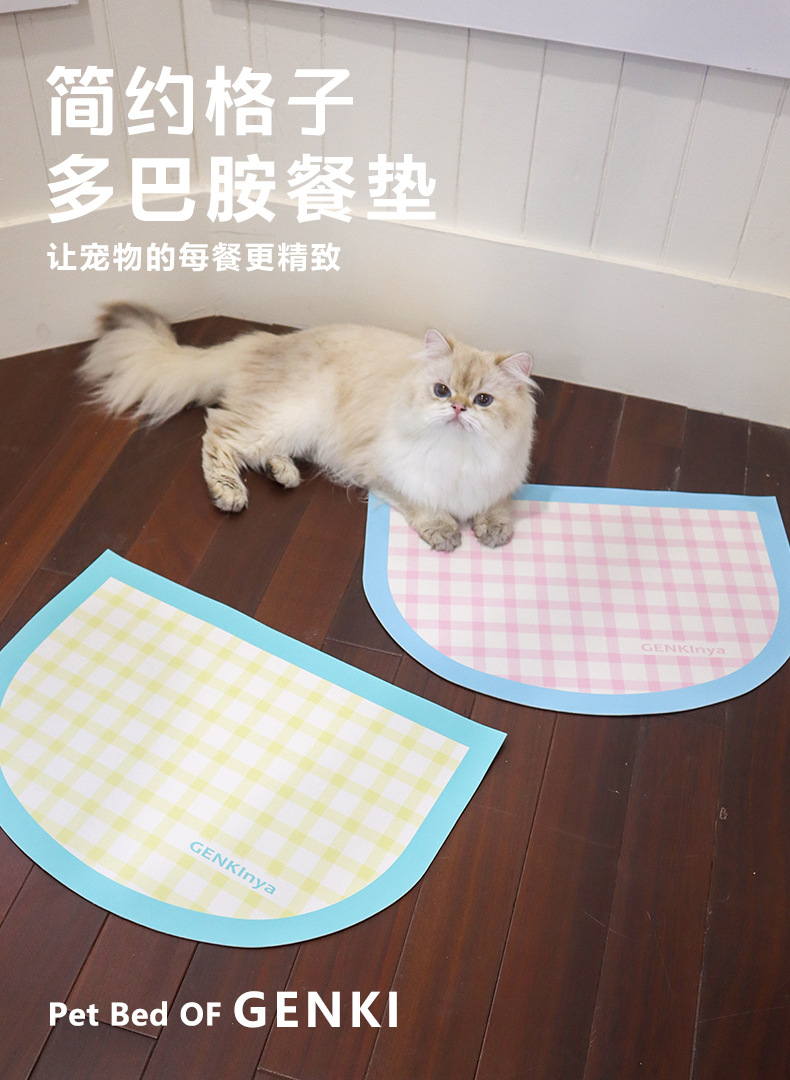 바둑판 만화 애완 동물 장소 매트 고양이 Pvc 가죽 매트 고양이 그릇 매트 오버플로 방지 미끄럼 방지 방수 국경 수출스토어 가기