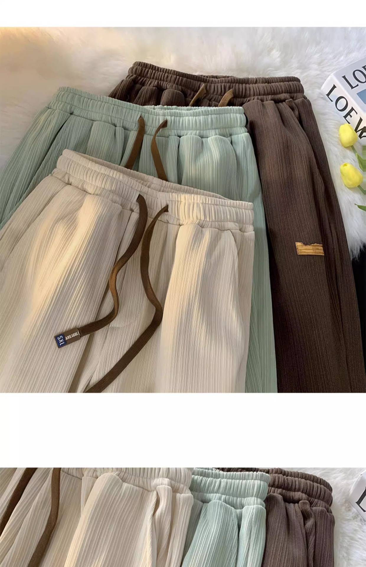 남자와 여자의 커플 여름 얇은 얼음 실크 고급 넓은 다리 바지 디자인 느슨한 캐주얼 긴 바지 스트레이트 다리 바지스토어 가기