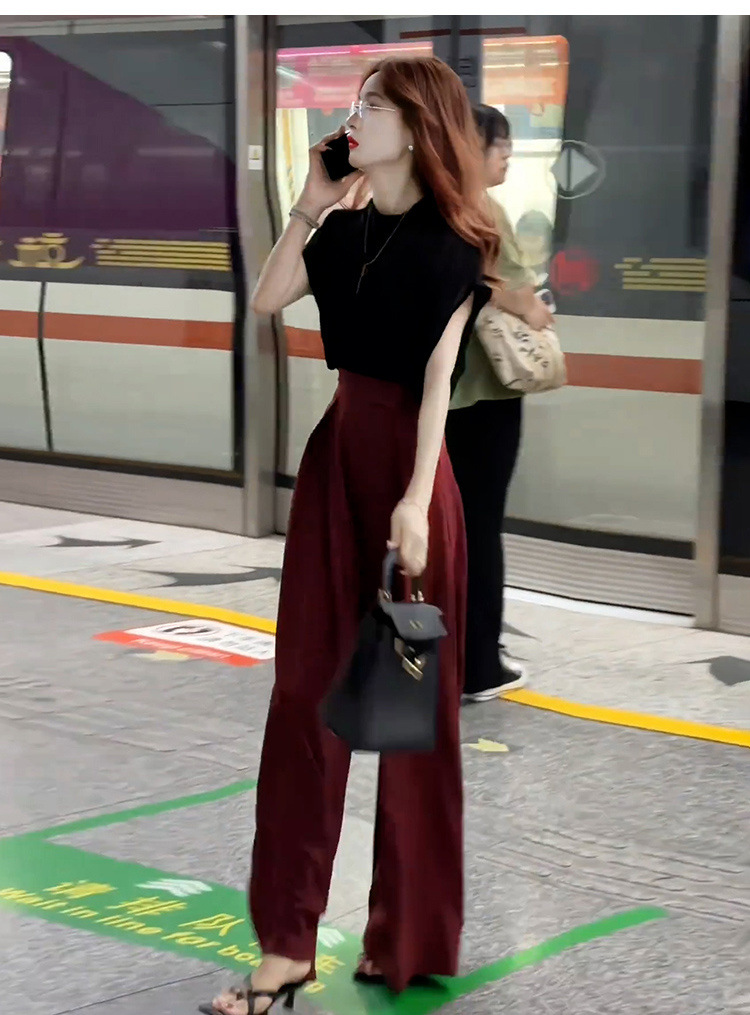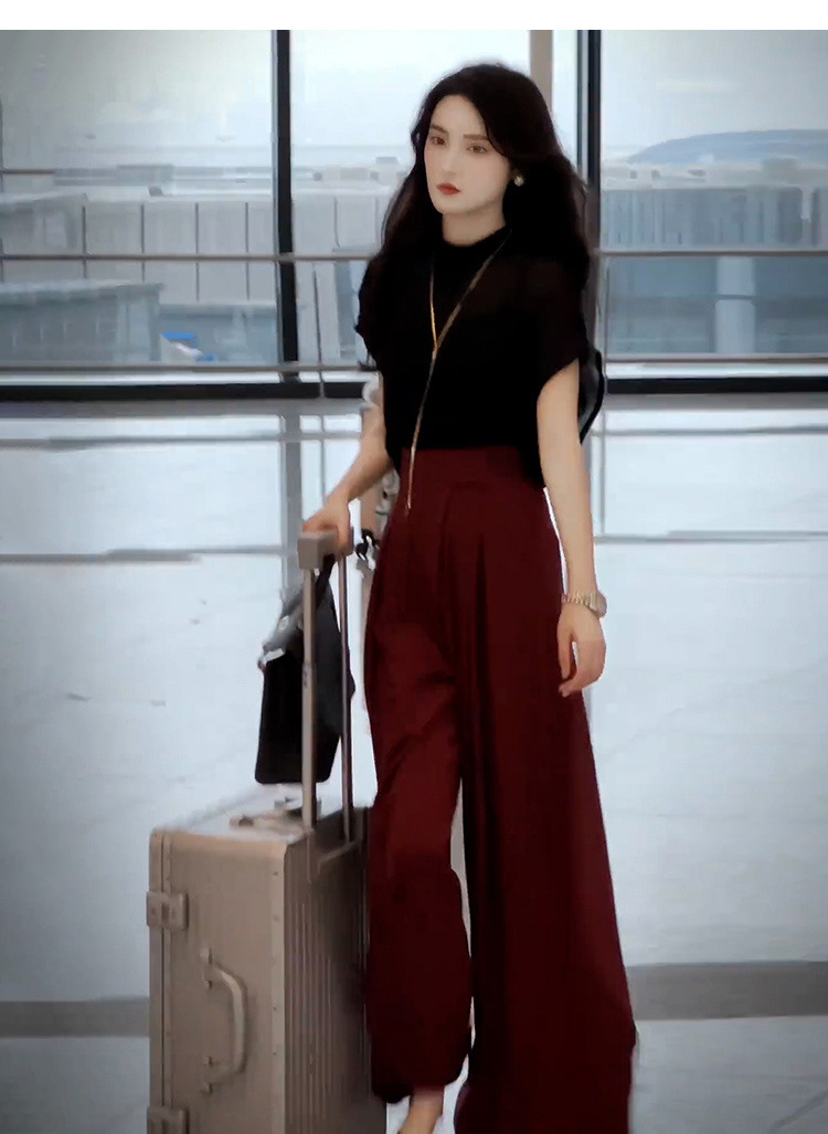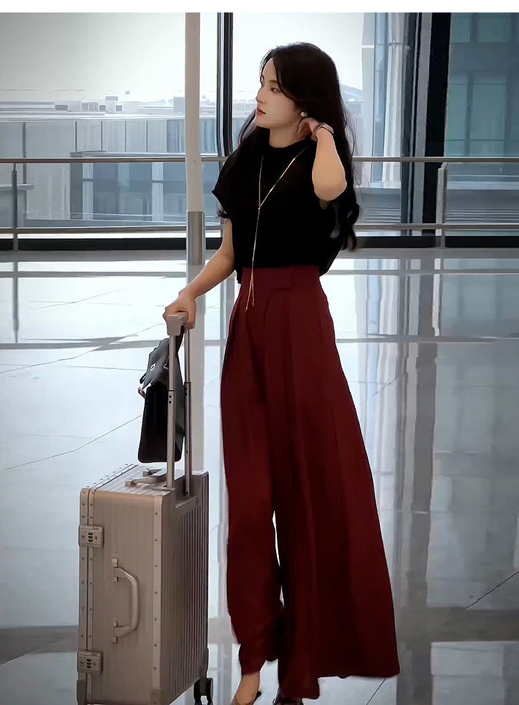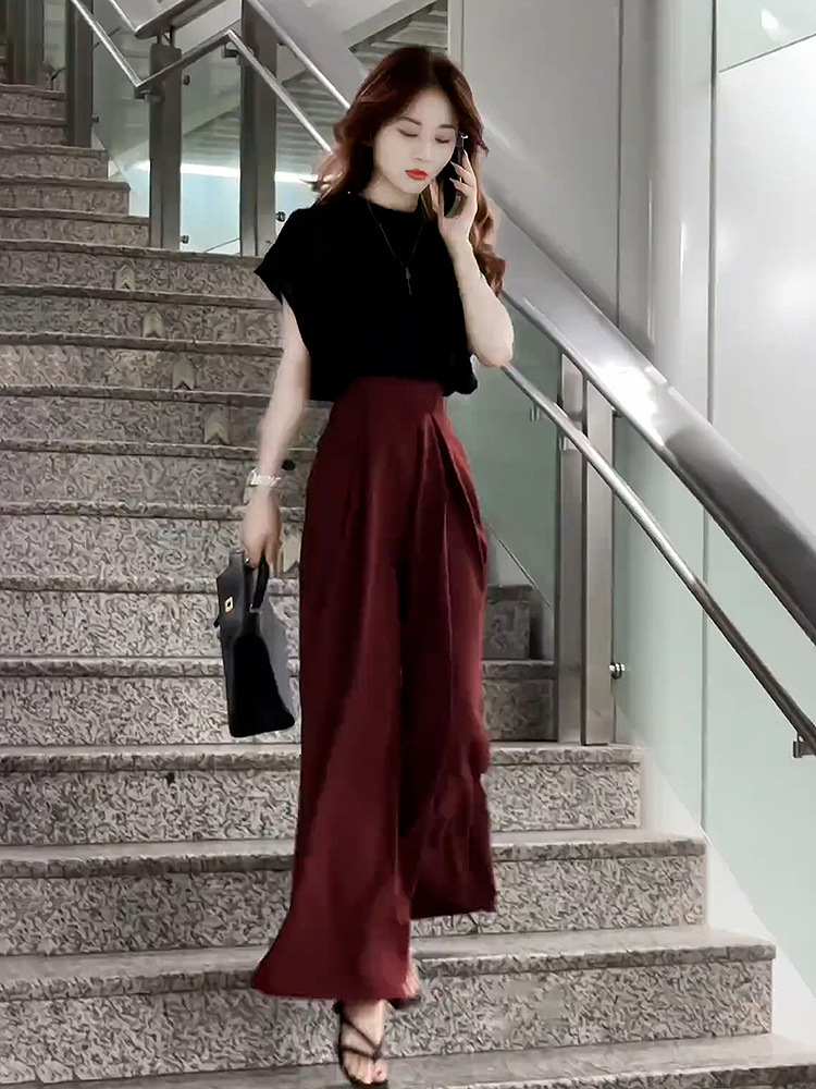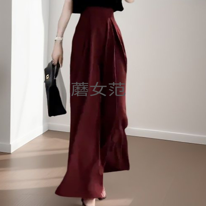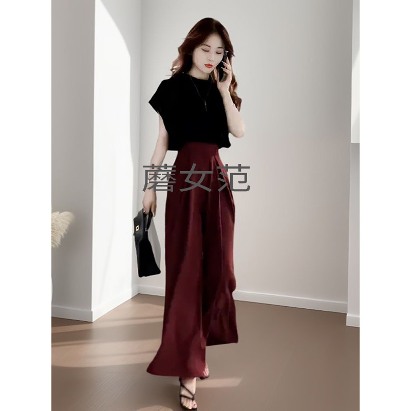 패션 웨스턴 스타일 2025 새로운 여름 여성 의류 틈새 디자인 탑 주름 넓은 다리 바지 투피스 세트 슬리밍 트렌디스토어 가기