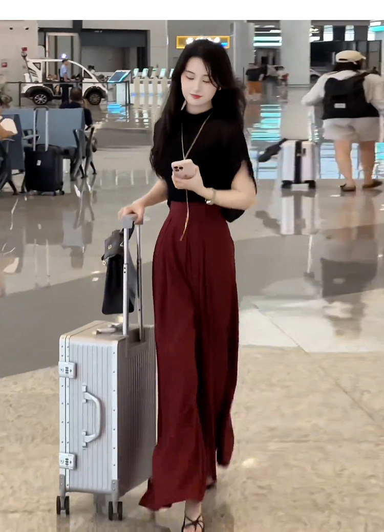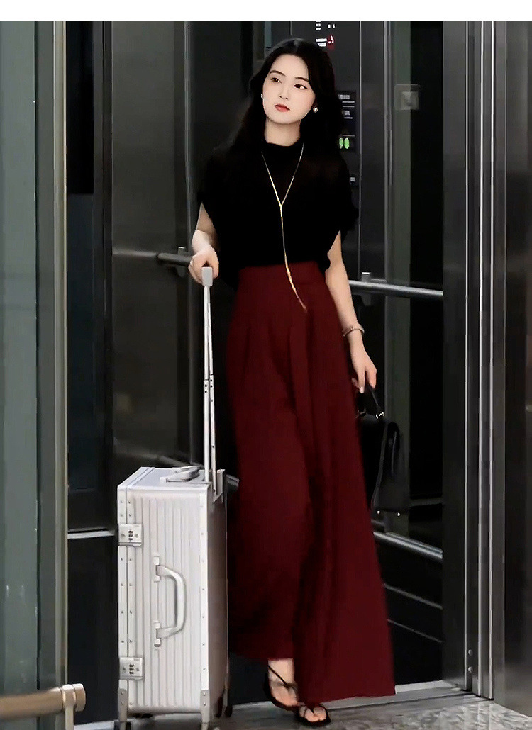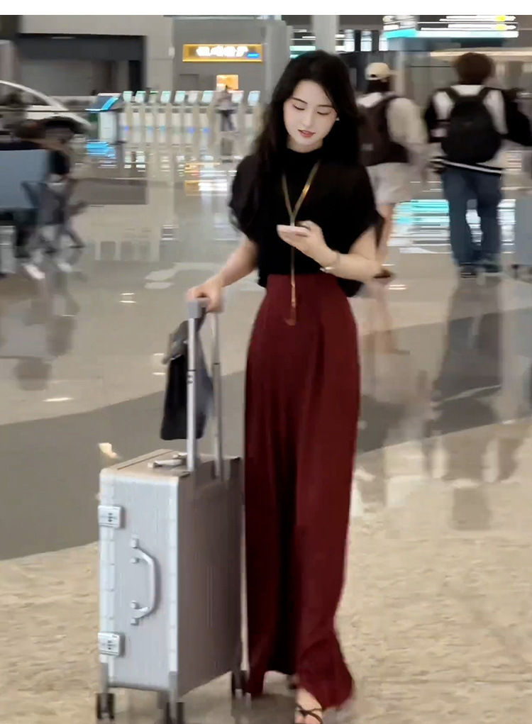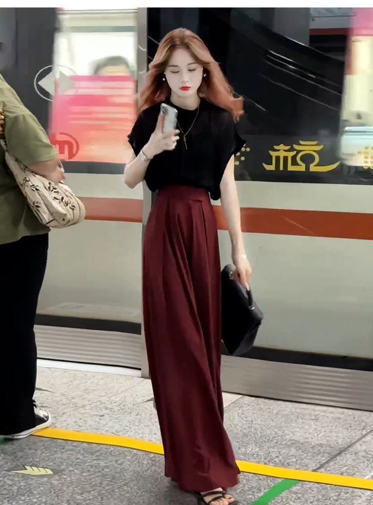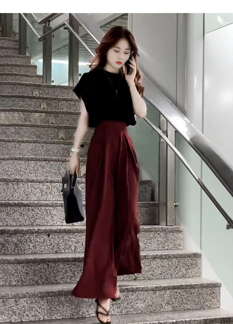 패션 웨스턴 스타일 2025 새로운 여름 여성 의류 틈새 디자인 탑 주름 넓은 다리 바지 투피스 세트 슬리밍 트렌디스토어 가기