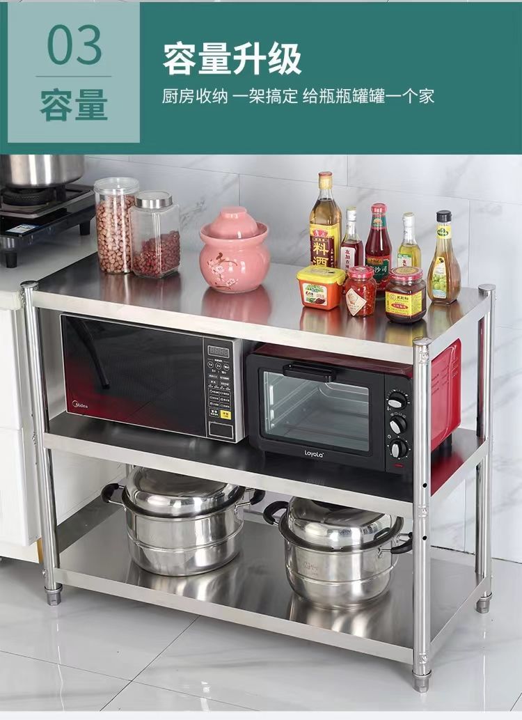 스테인레스 스틸 스토리지 랙 주방 상자 보드 작업대 특수 테이블 상업용 더블 레이어 직사각형 선반 3 층 조리대
