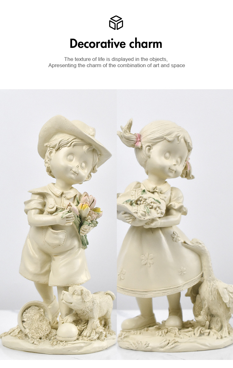국경 간 창조적 인 골동품 소년과 소녀 수지 동상 공예 실내 안뜰 야외 홈 장식