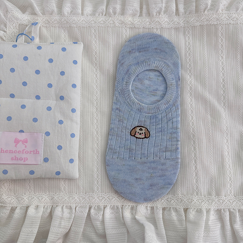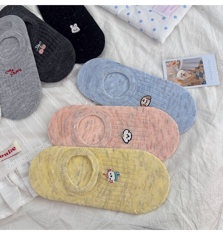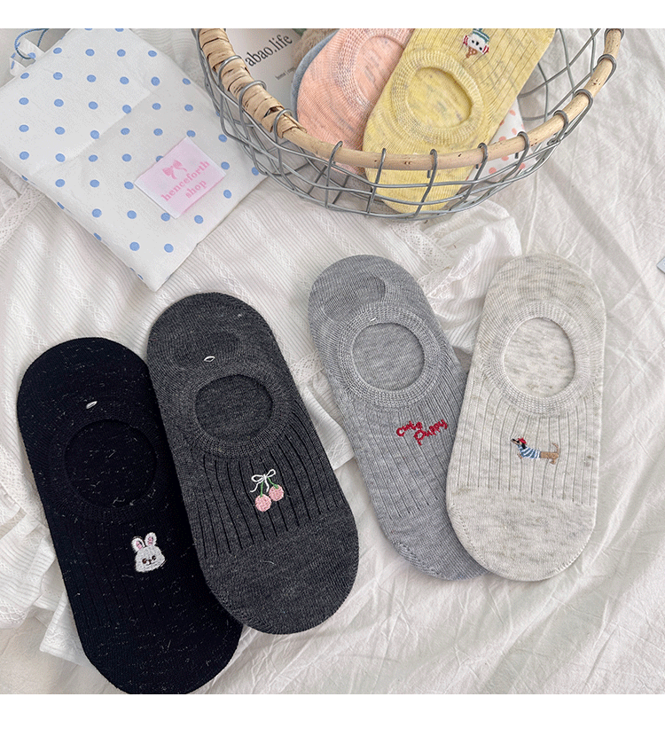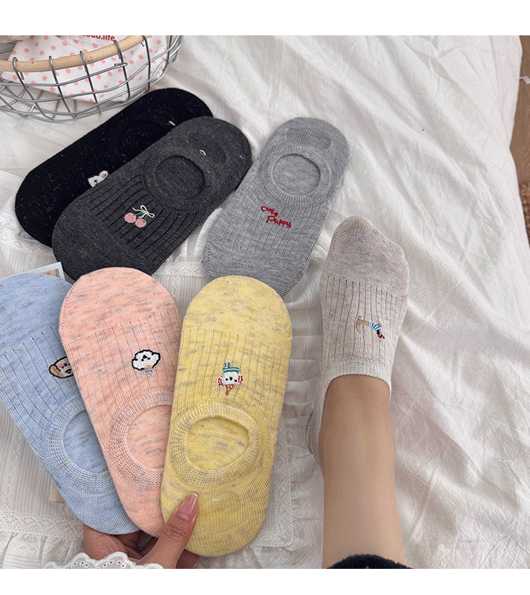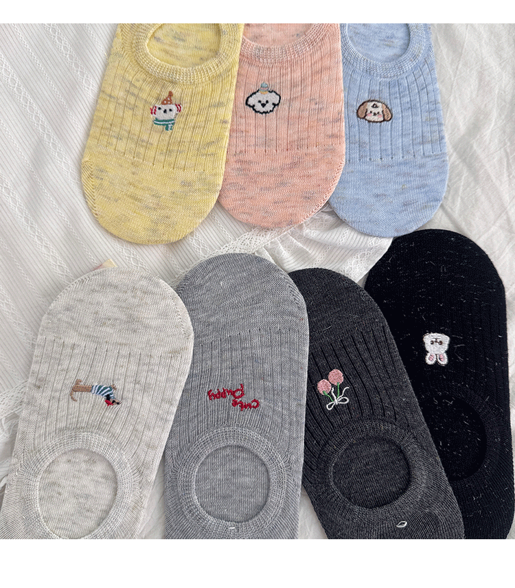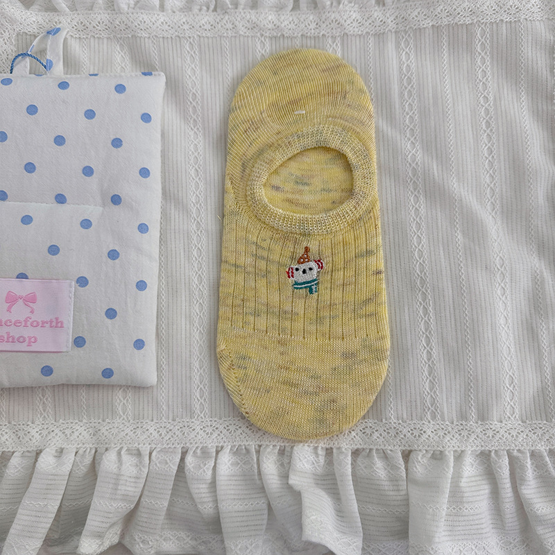 만화 자수 보트 양말 여성의 얇은 봄과 여름 새로운면 귀여운 양말 어린이 보이지 않는 양말 실리콘 미끄럼 방지 힐스토어 가기