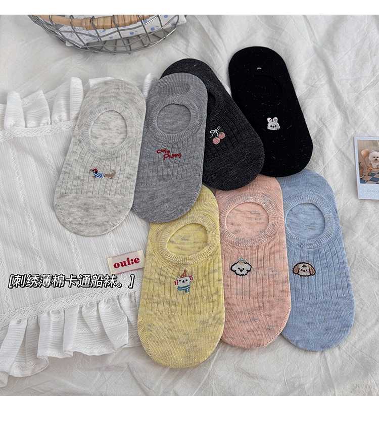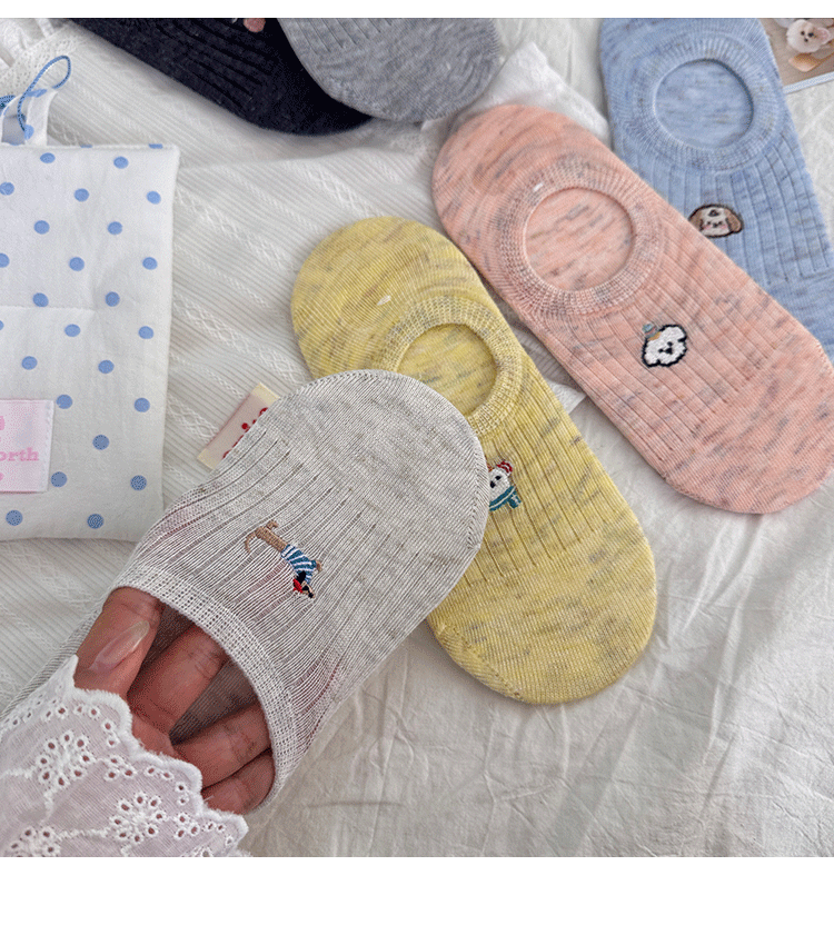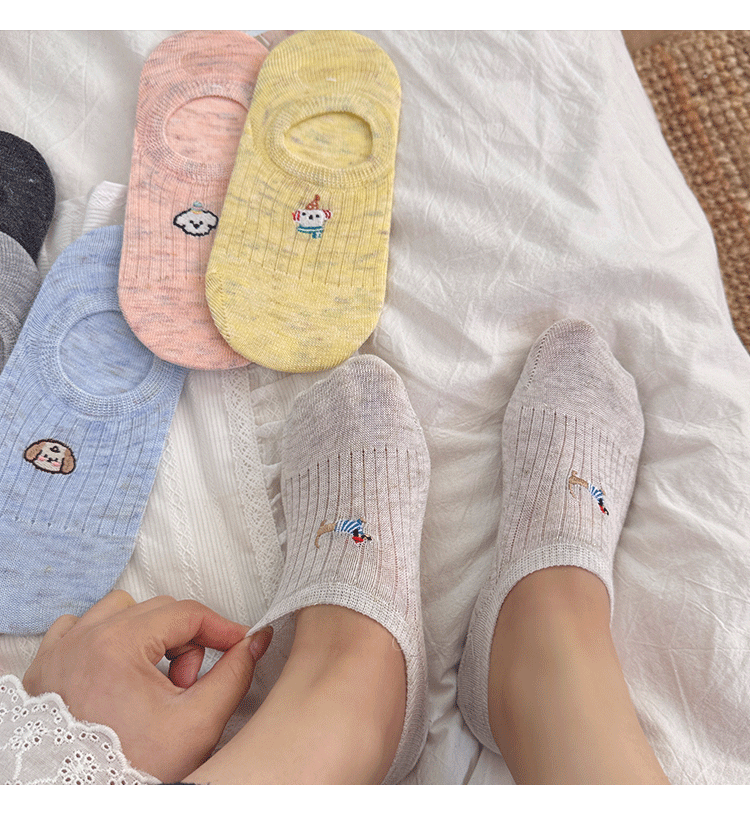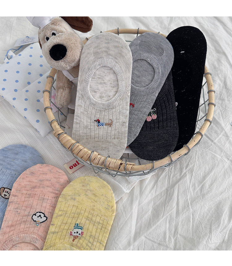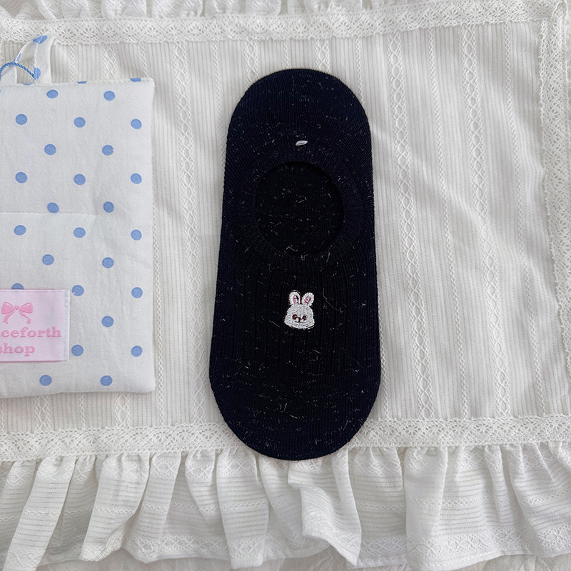 만화 자수 보트 양말 여성의 얇은 봄과 여름 새로운면 귀여운 양말 어린이 보이지 않는 양말 실리콘 미끄럼 방지 힐스토어 가기