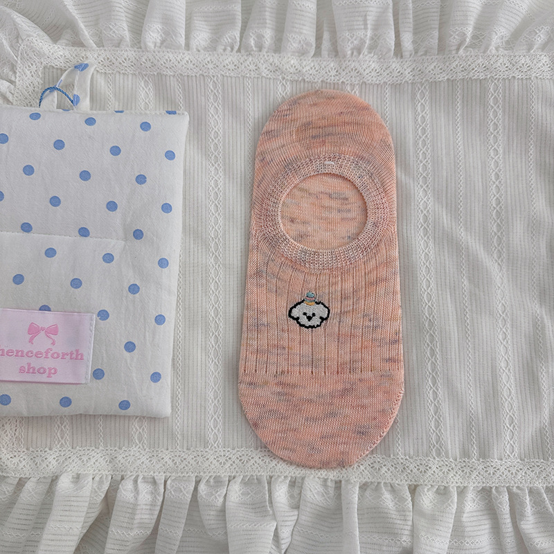 만화 자수 보트 양말 여성의 얇은 봄과 여름 새로운면 귀여운 양말 어린이 보이지 않는 양말 실리콘 미끄럼 방지 힐
