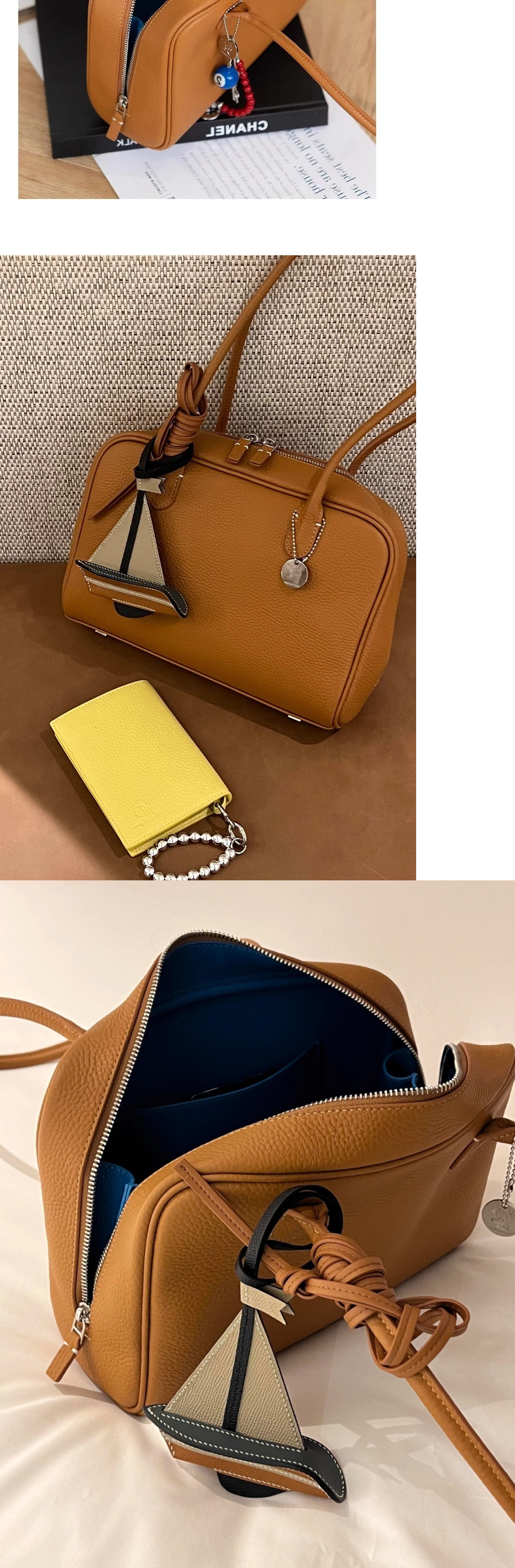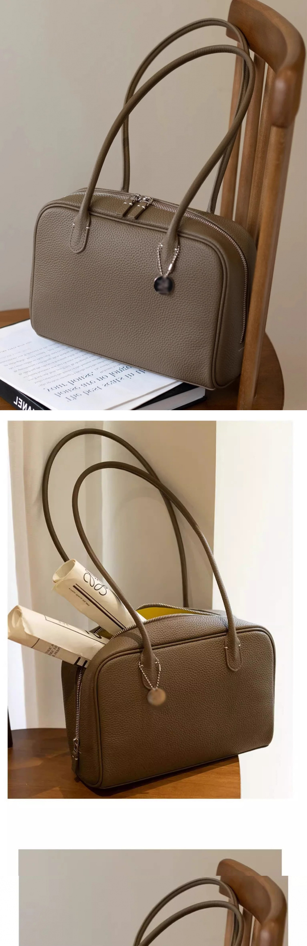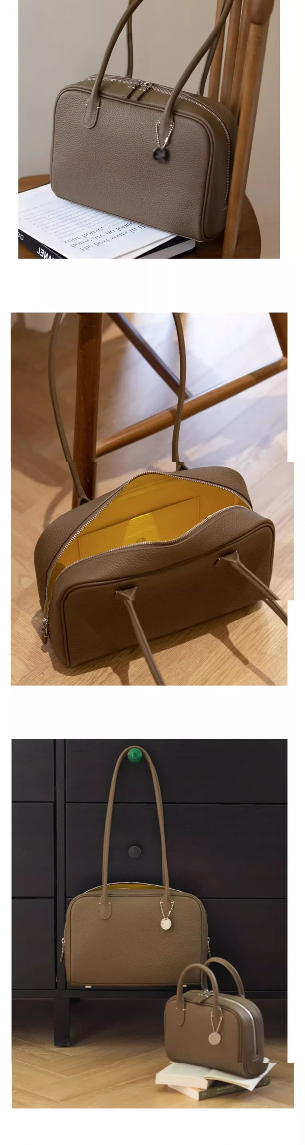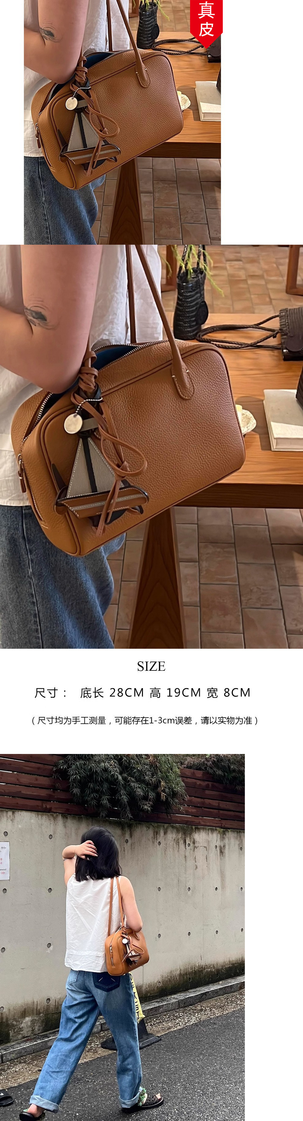 진짜 가죽 휴대용 어깨 보스턴 가방 여성의 2025 새로운 하이 엔드 대용량 통근 가방스토어 가기
