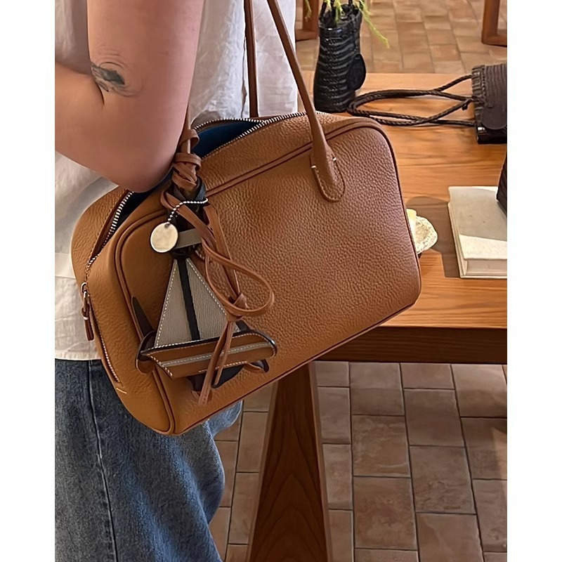 진짜 가죽 휴대용 어깨 보스턴 가방 여성의 2025 새로운 하이 엔드 대용량 통근 가방