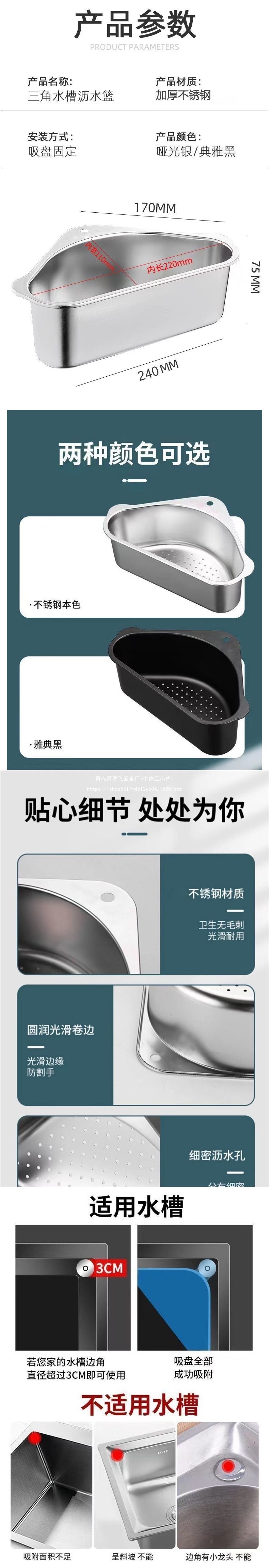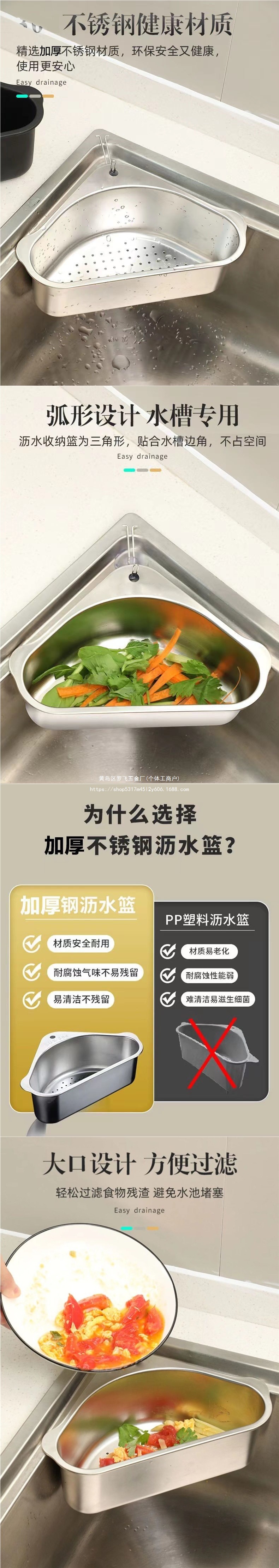 물 삼각형 배수 바구니 스테인레스 스틸 다목적 주방 필터 남은 저장 벽 매달려 비 천공 보편적
