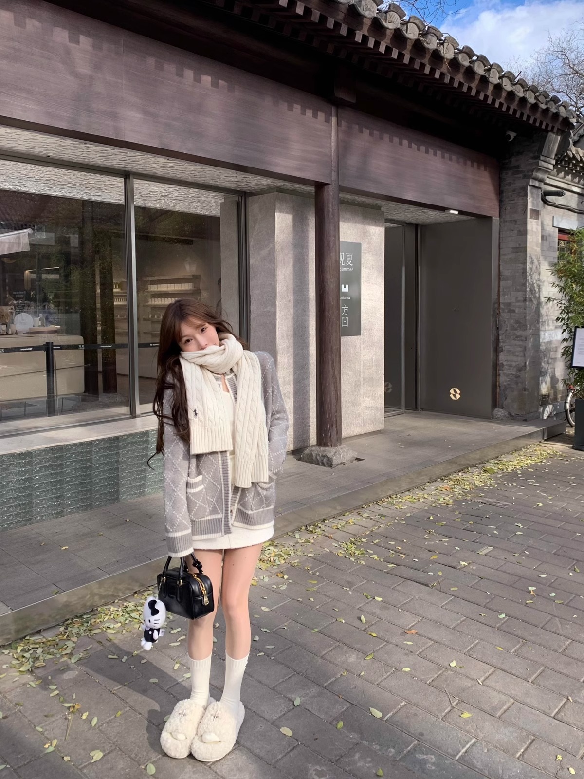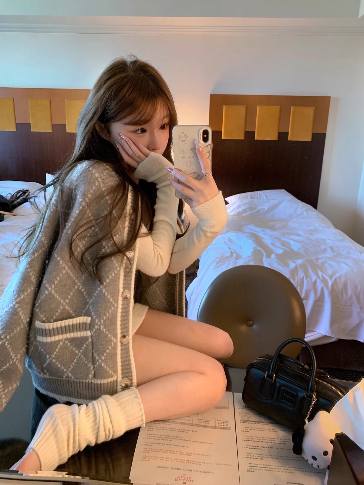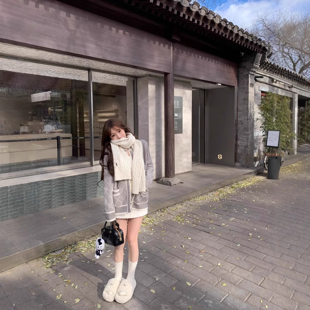 [하트 의류] 디자인 마름모 스웨터 코트 여성의 가을과 겨울 긴 회색 니트 카디건스토어 가기