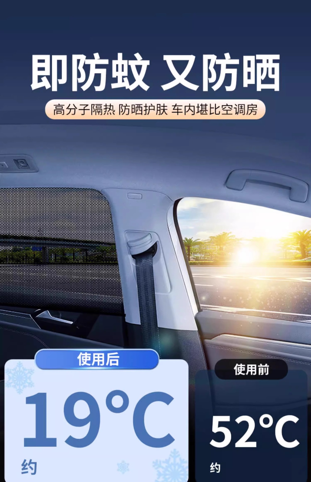 자동차 차양 자동차 스크린 안티 모기 커튼 블랙 거즈 메쉬 사이드 창 차양 전체 자외선 차단제 모기장스토어 가기