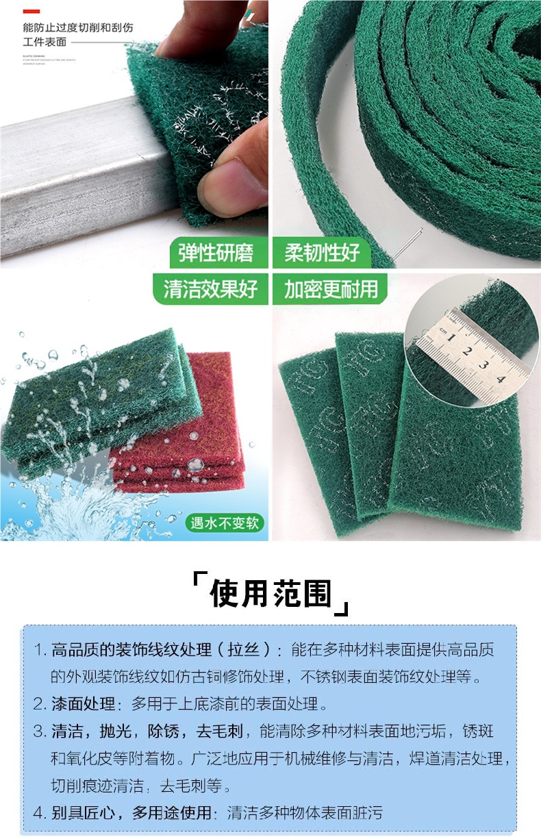 두꺼운 수색 패드 산업용 스테인레스 스틸 와이어 드로잉 천 에머리 브러시 냄비 주방 철판 녹 제거 및 오염 제거
