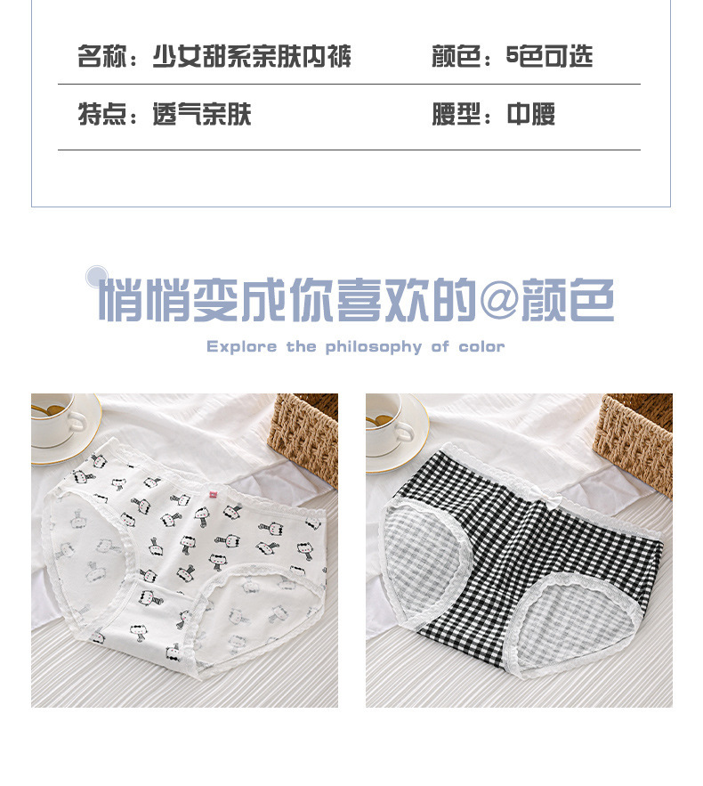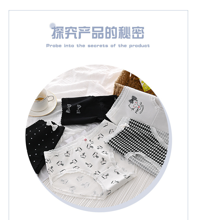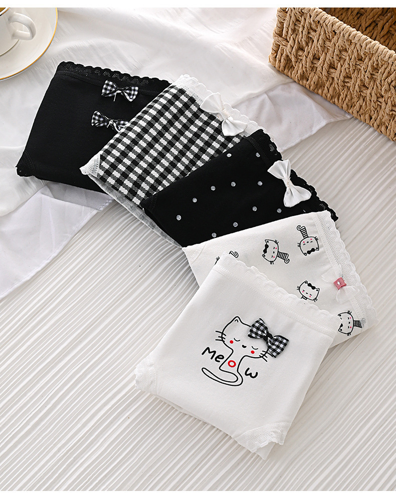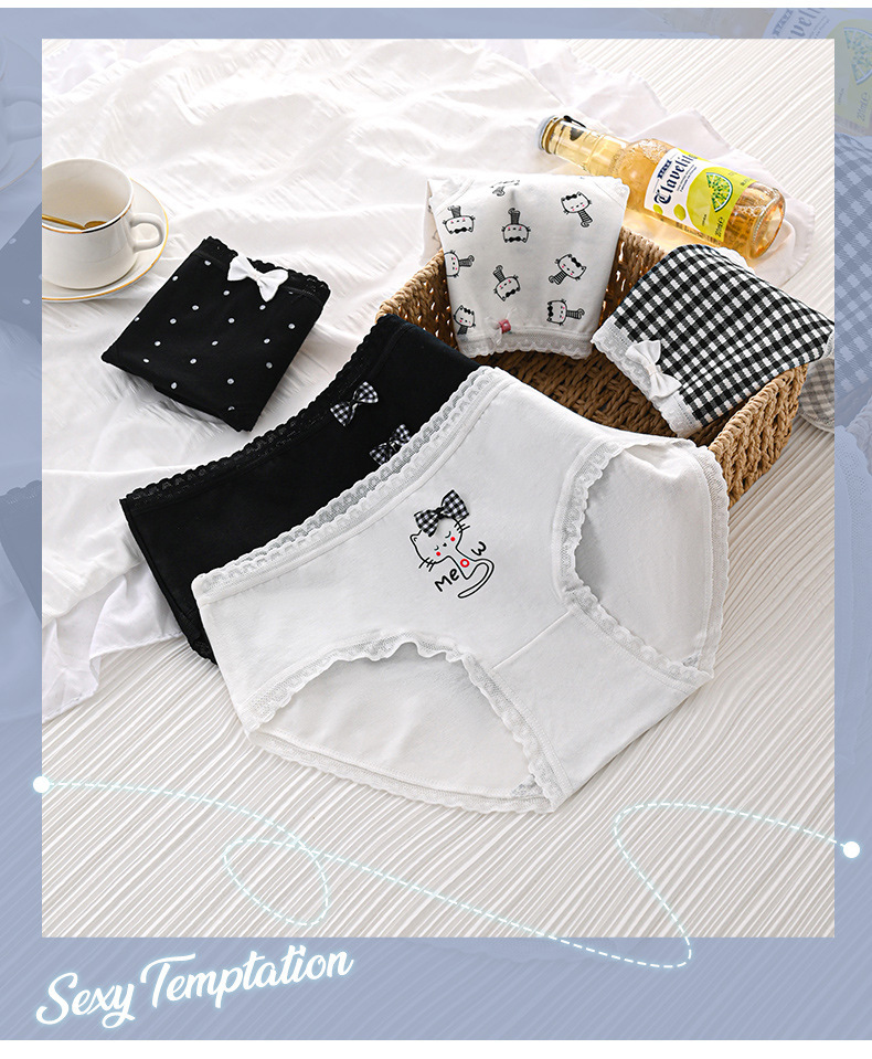 여성 속옷 통기성 가랑이 허리 만화 고양이 일본 귀여운 소녀 학생 엉덩이 브리프 얇은 국경 전기스토어 가기