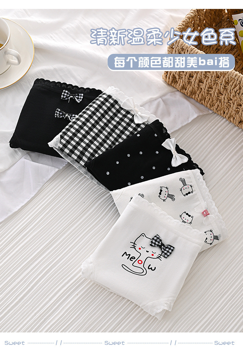 여성 속옷 통기성 가랑이 허리 만화 고양이 일본 귀여운 소녀 학생 엉덩이 브리프 얇은 국경 전기