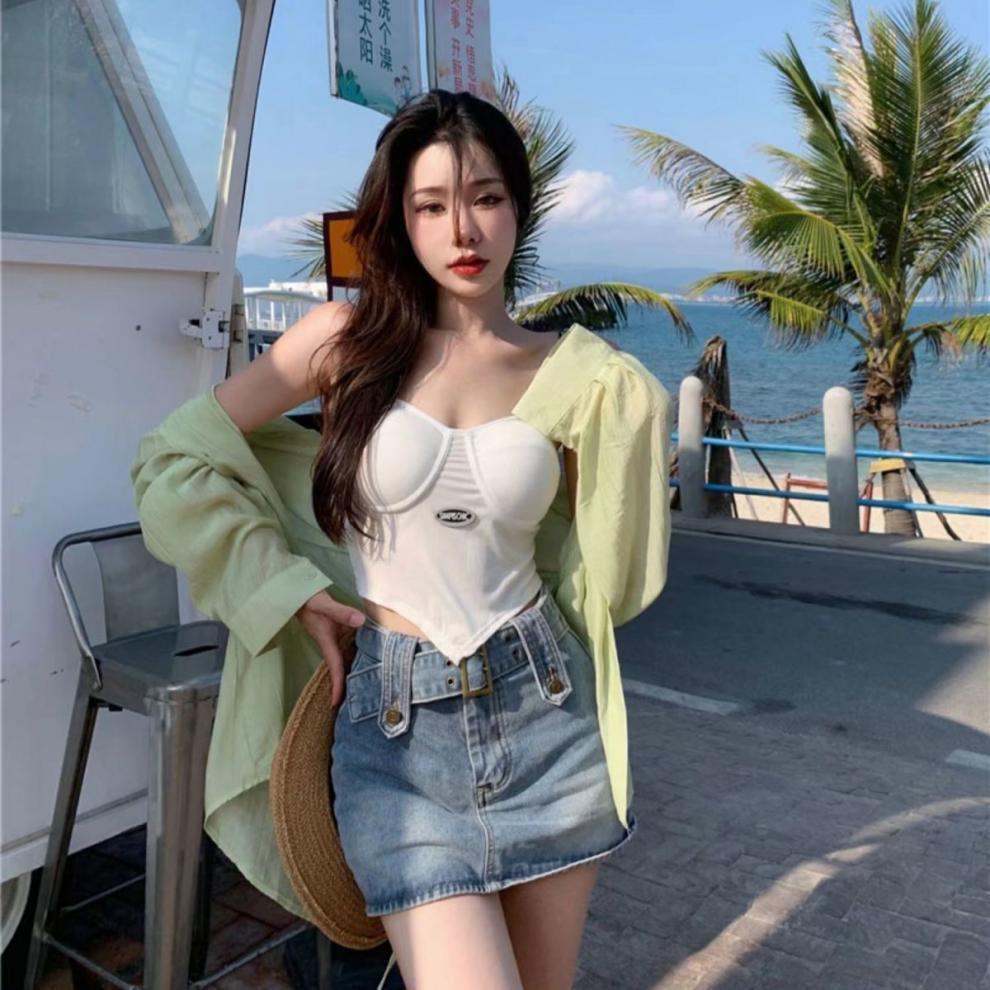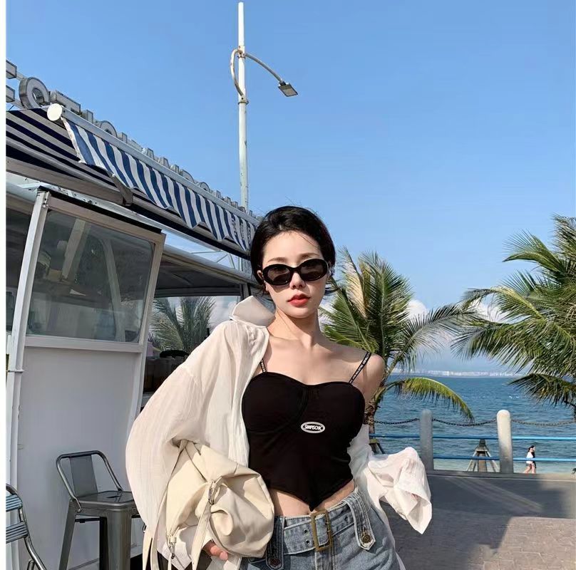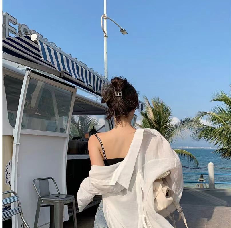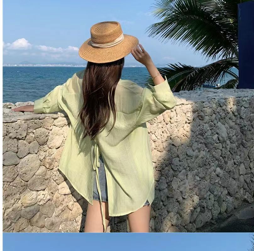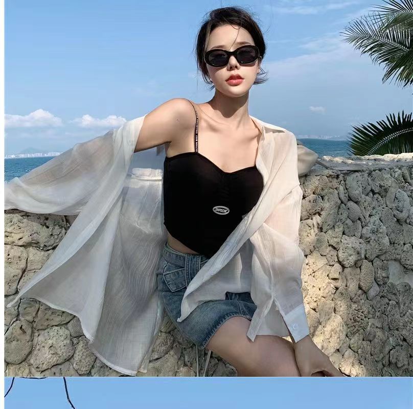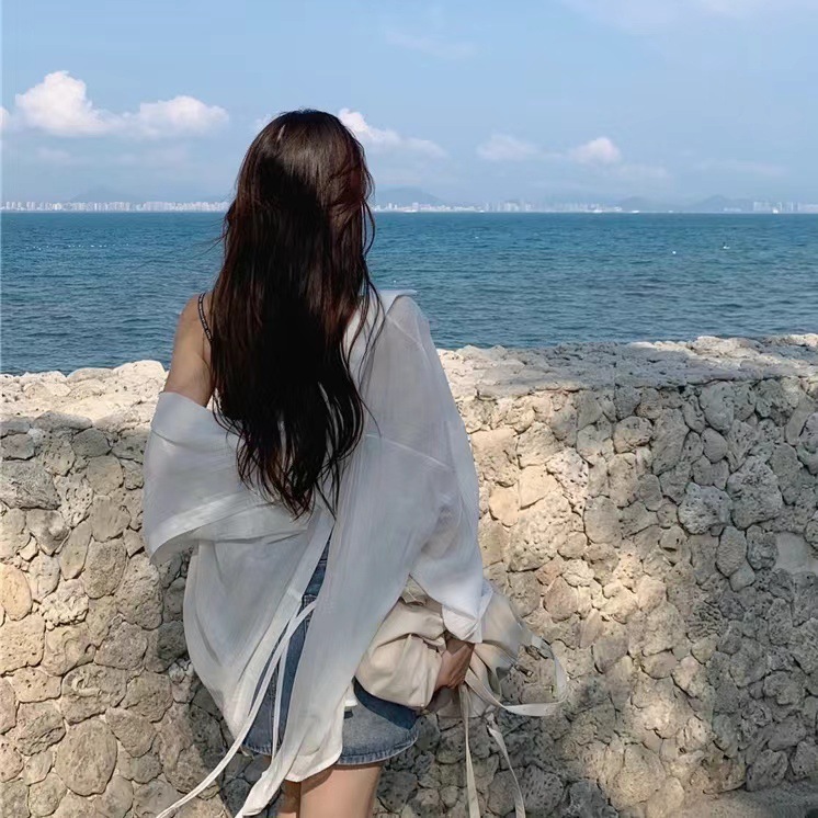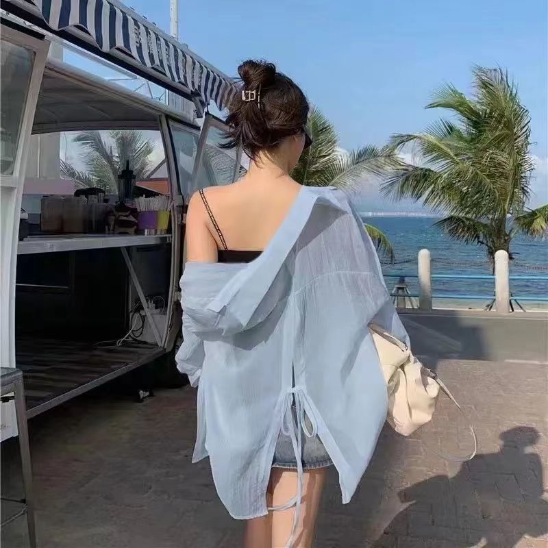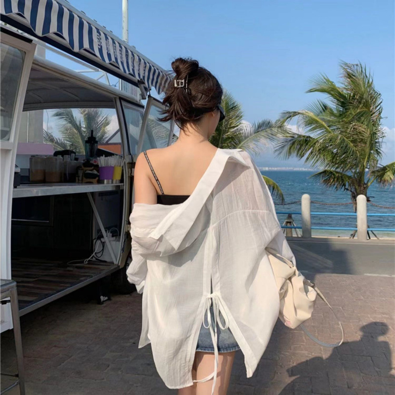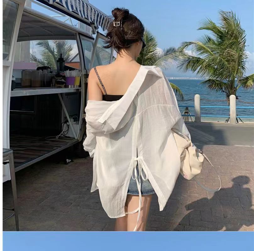 얇은 긴팔 태양 보호 셔츠 여성용 2025 여름 디자인 센스 백 슬릿 스트랩 화이트 셔츠 최고 트렌디스토어 가기
