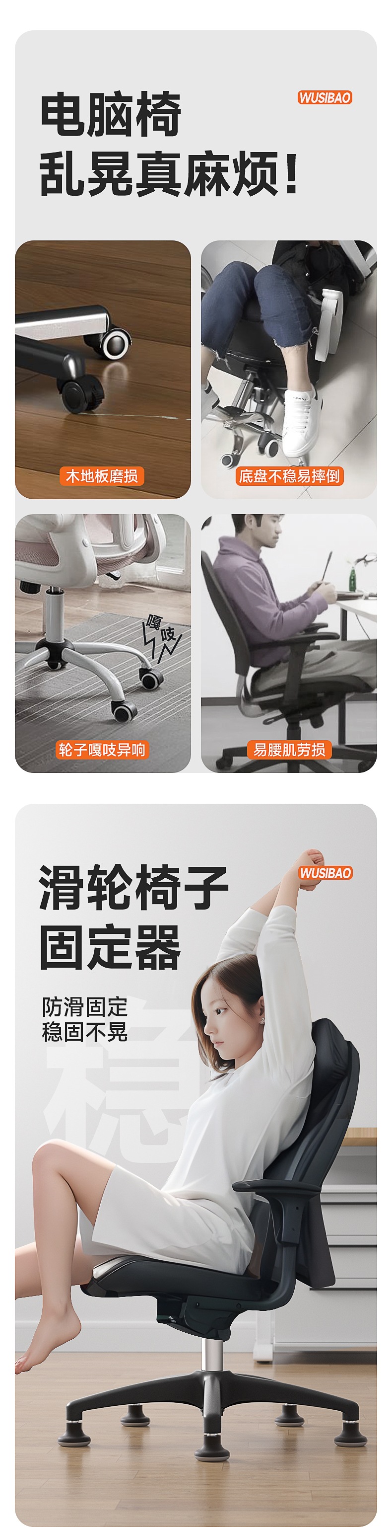 의자 풀리 고정기 유니버설 휠 미끄럼 방지 발 매트 사무실 의자 회전 의자 컴퓨터 의자 롤러 고정