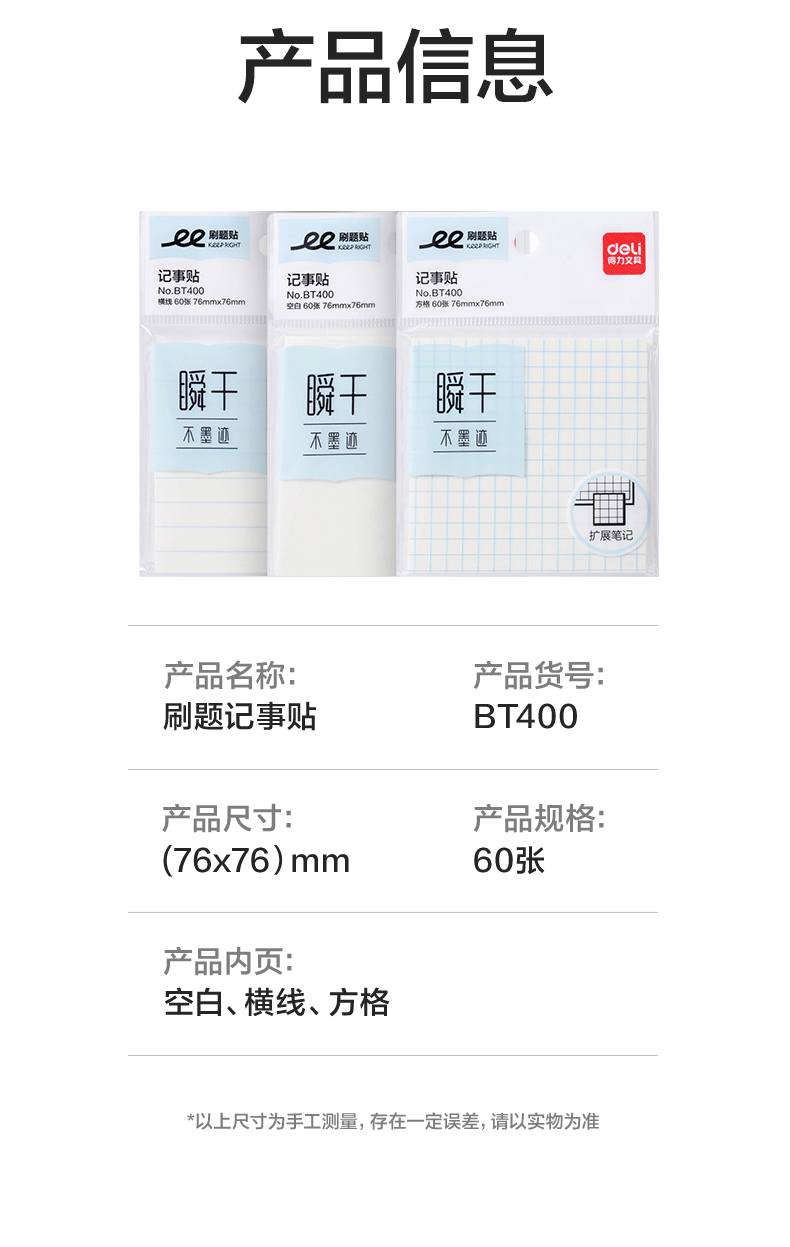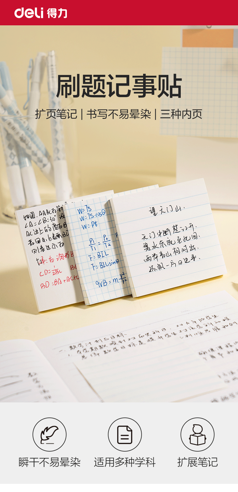 델리 BT400 포스트잇 패치 스퀘어 스티커 학생 간단한 사무실 일본 브러시 포스트스토어 가기
