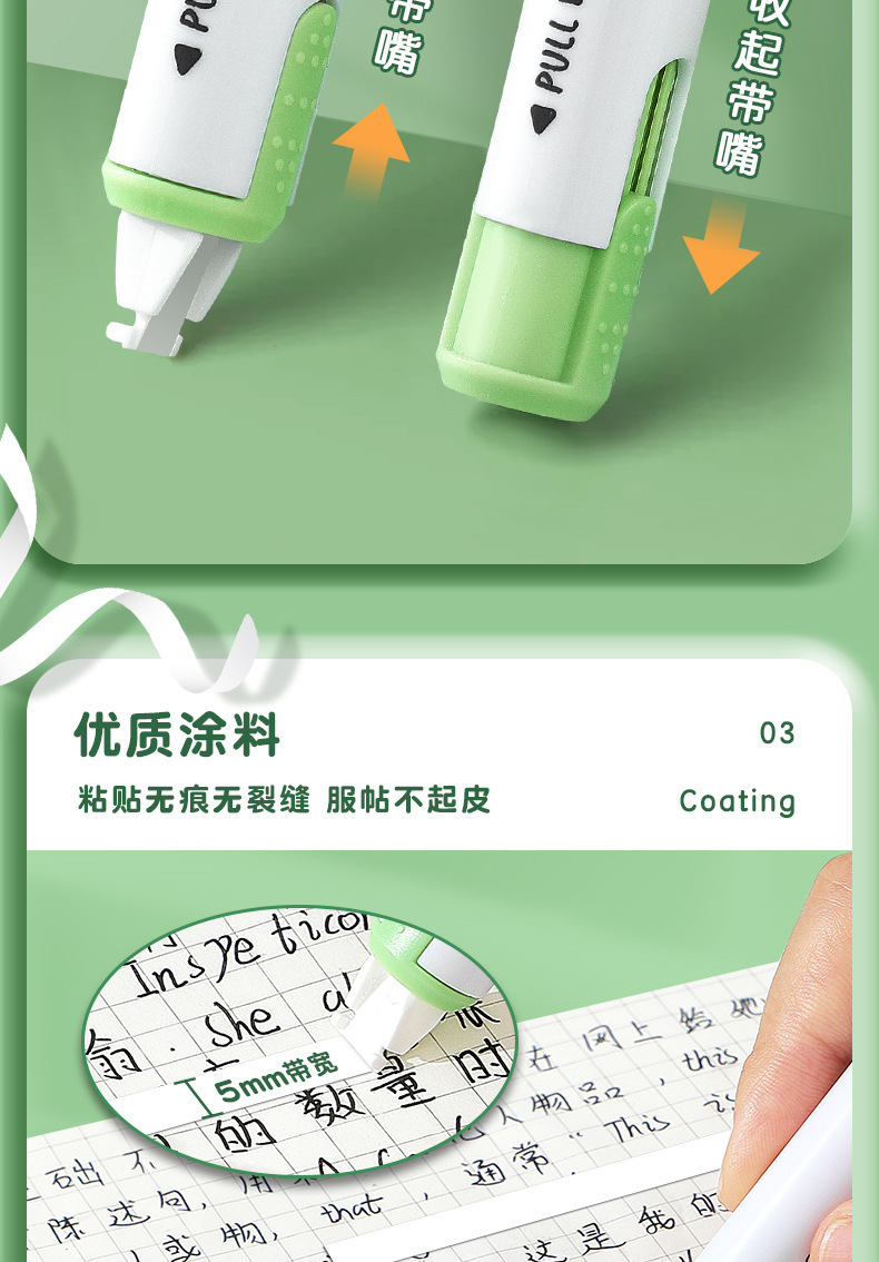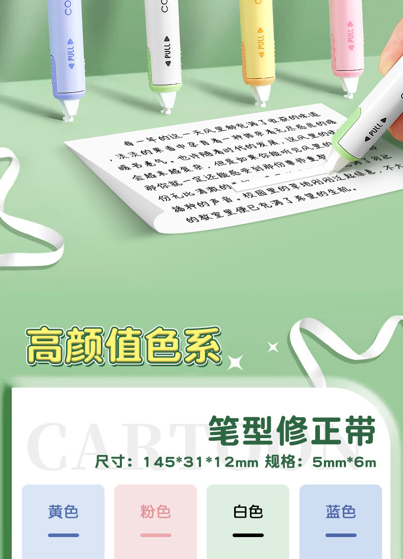 학생용 만화 펜 형 보정 테이프 휴대용 고 값 보정 테이프 교체 코어 부드러운 6 m 보정 테이프