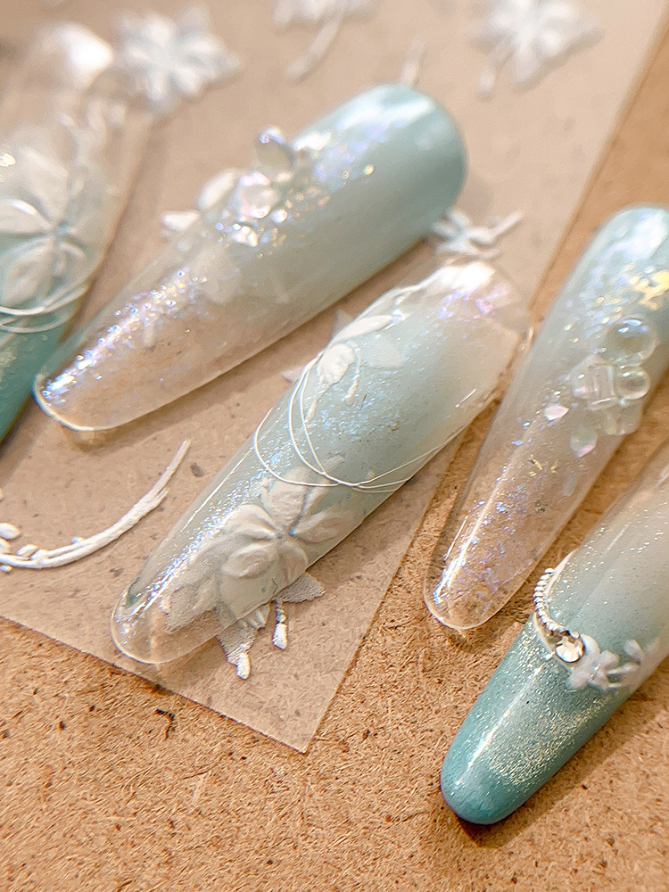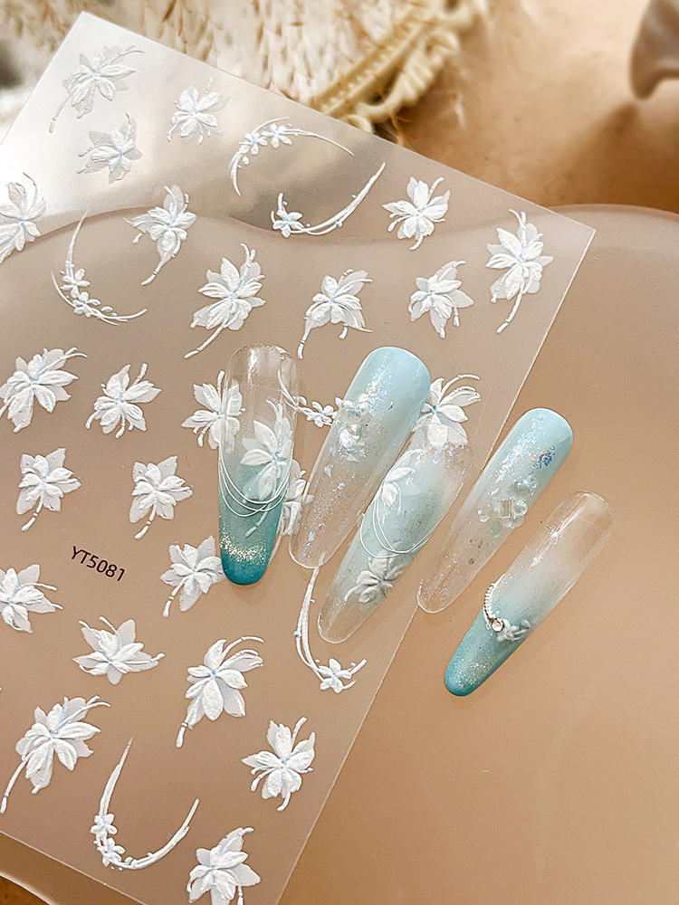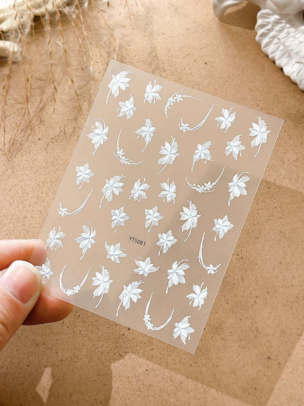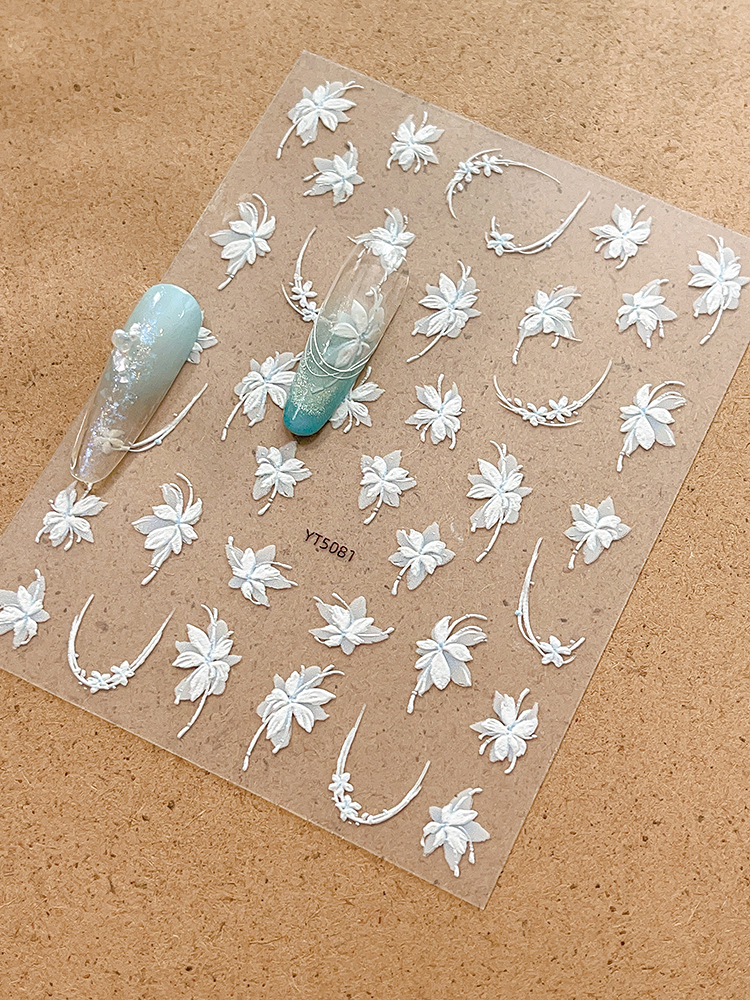 YITU 개미 그림 구호 흰색 만화 네일 아트 스티커 달콤한 작은 신선한 흰색 꽃 장식 스티커 YT5081