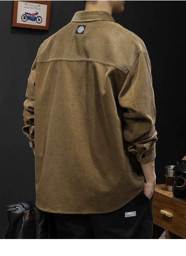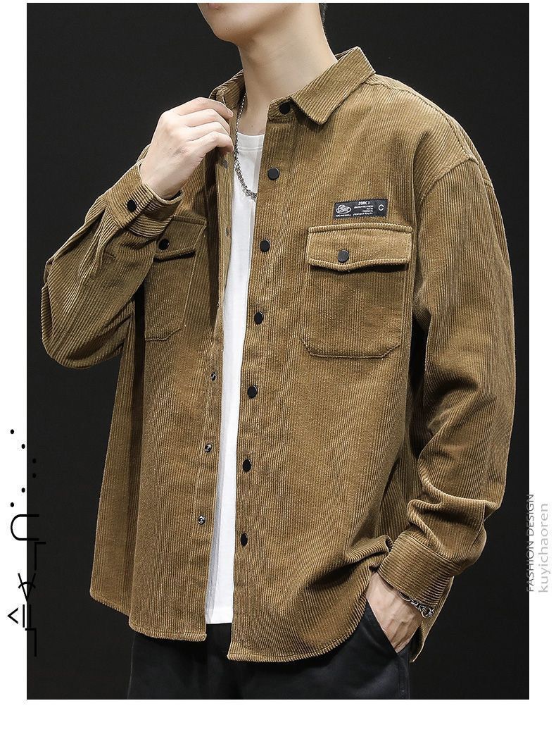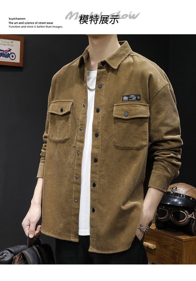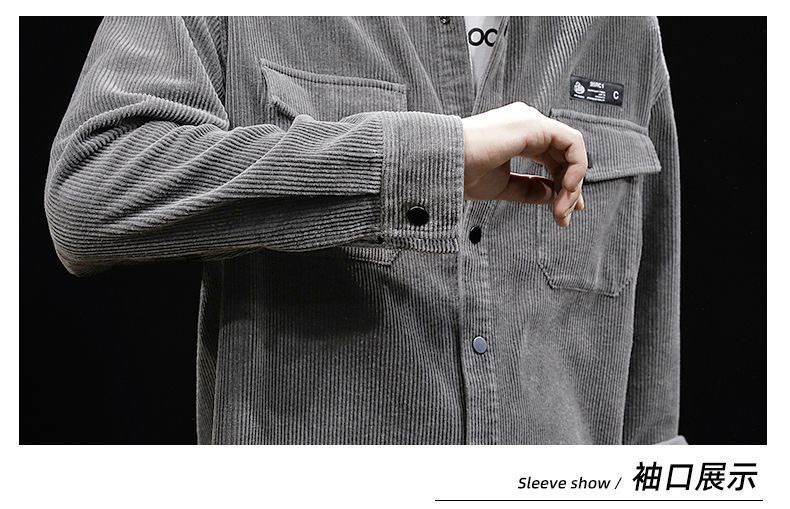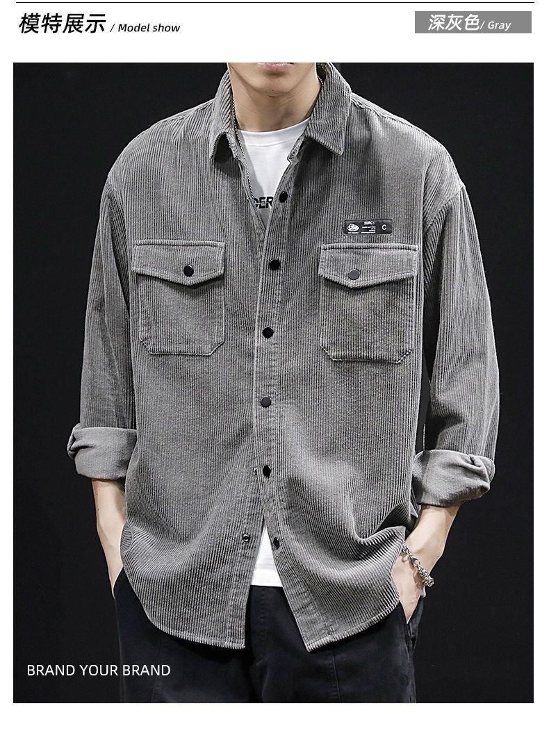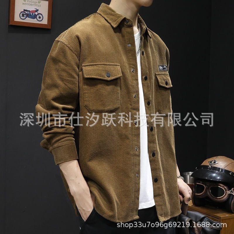 코듀로이 셔츠 남성 봄, 가을 루즈 플러스 지방 홍콩 스타일 캐주얼 긴팔 셔츠 드롭 배송 작업복스토어 가기
