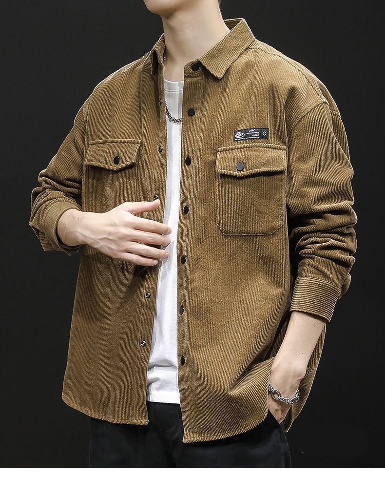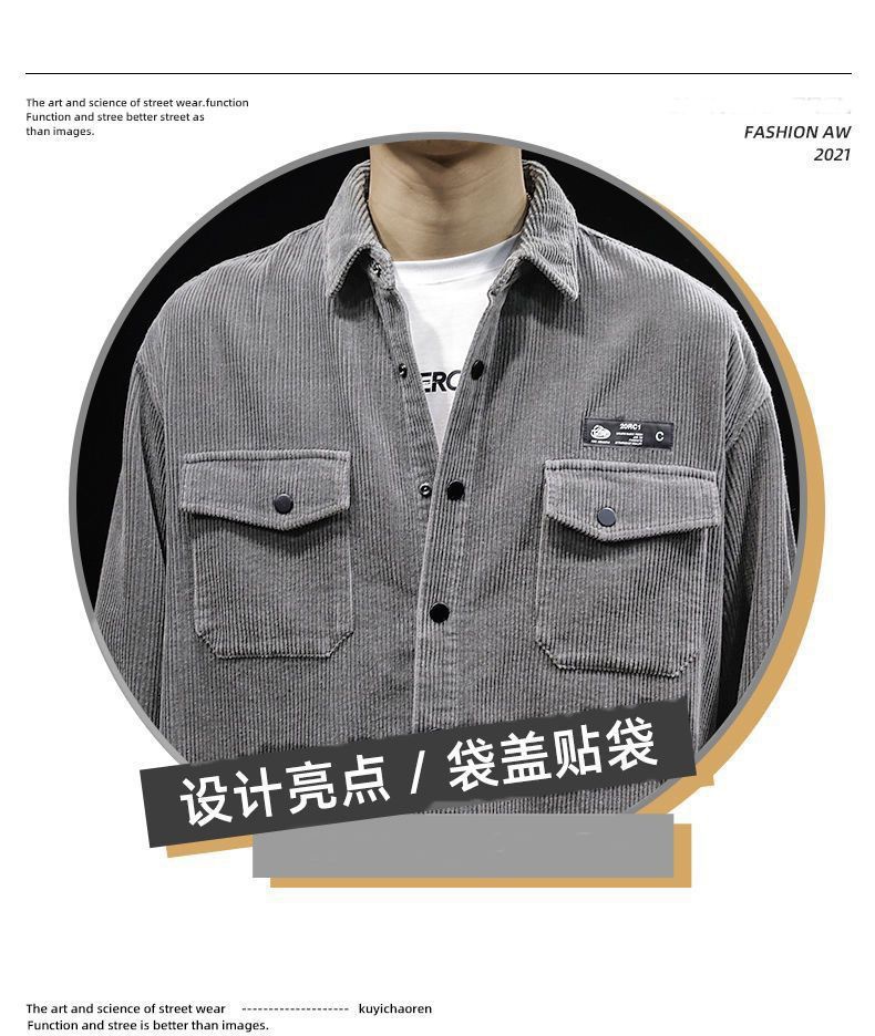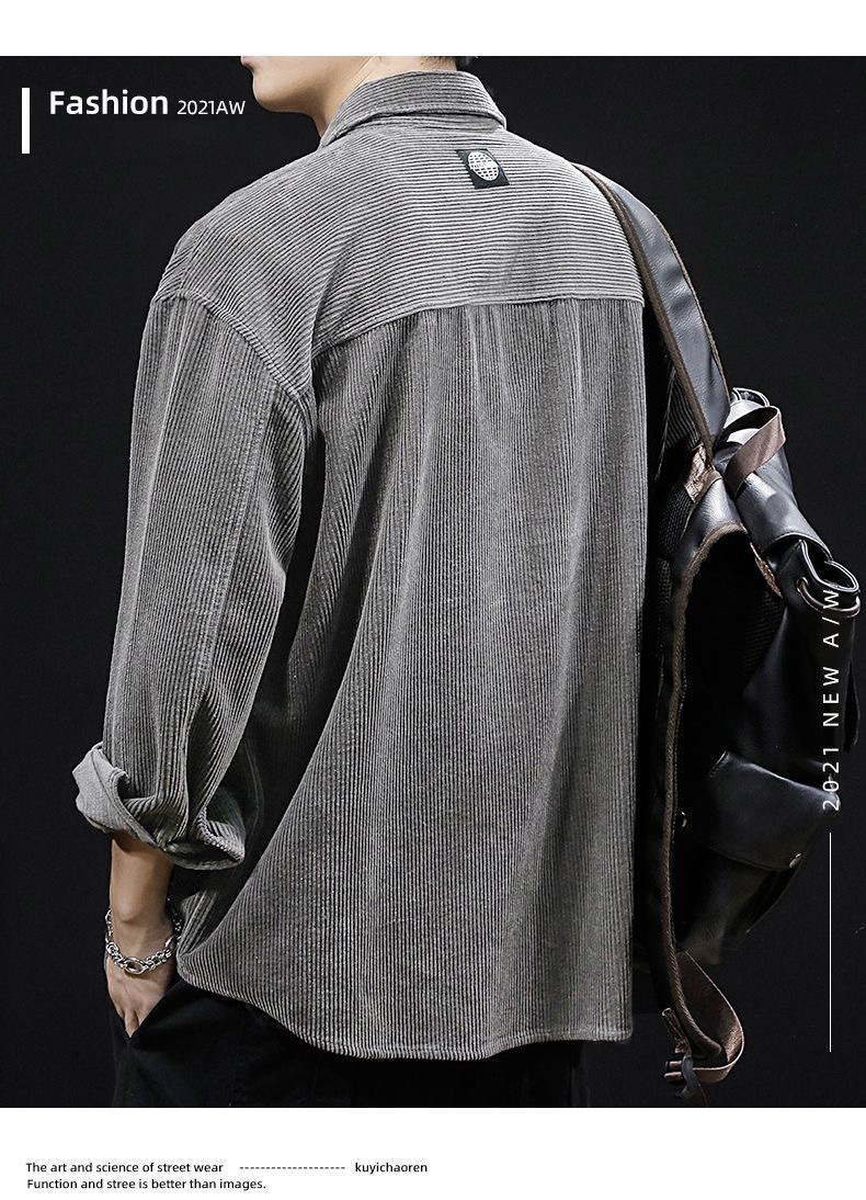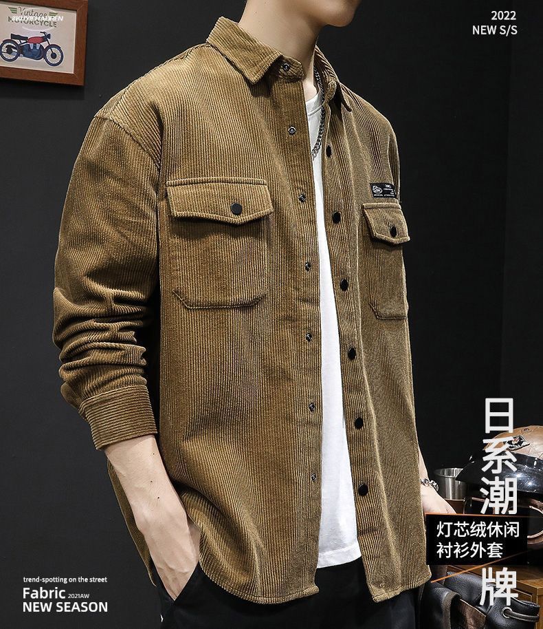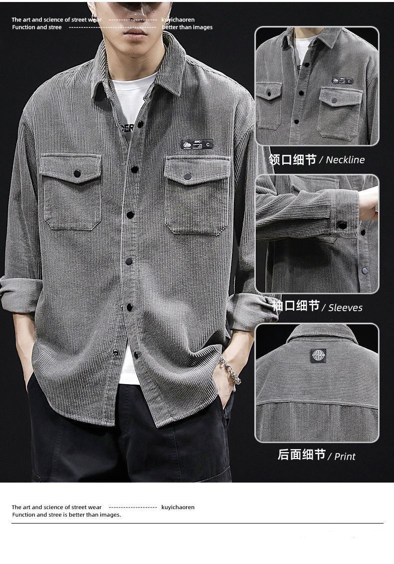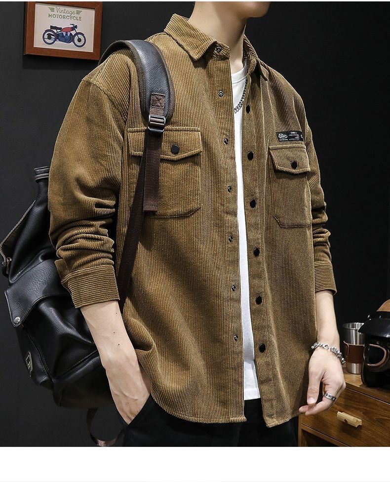 코듀로이 셔츠 남성 봄, 가을 루즈 플러스 지방 홍콩 스타일 캐주얼 긴팔 셔츠 드롭 배송 작업복스토어 가기