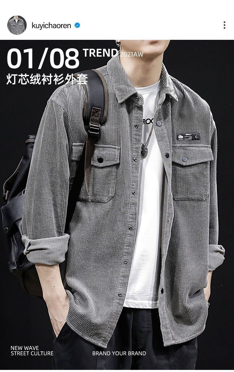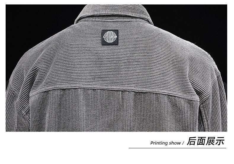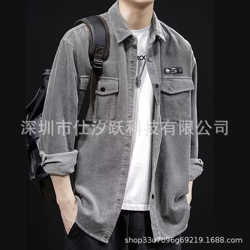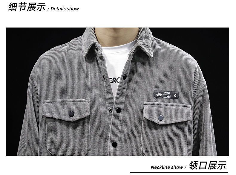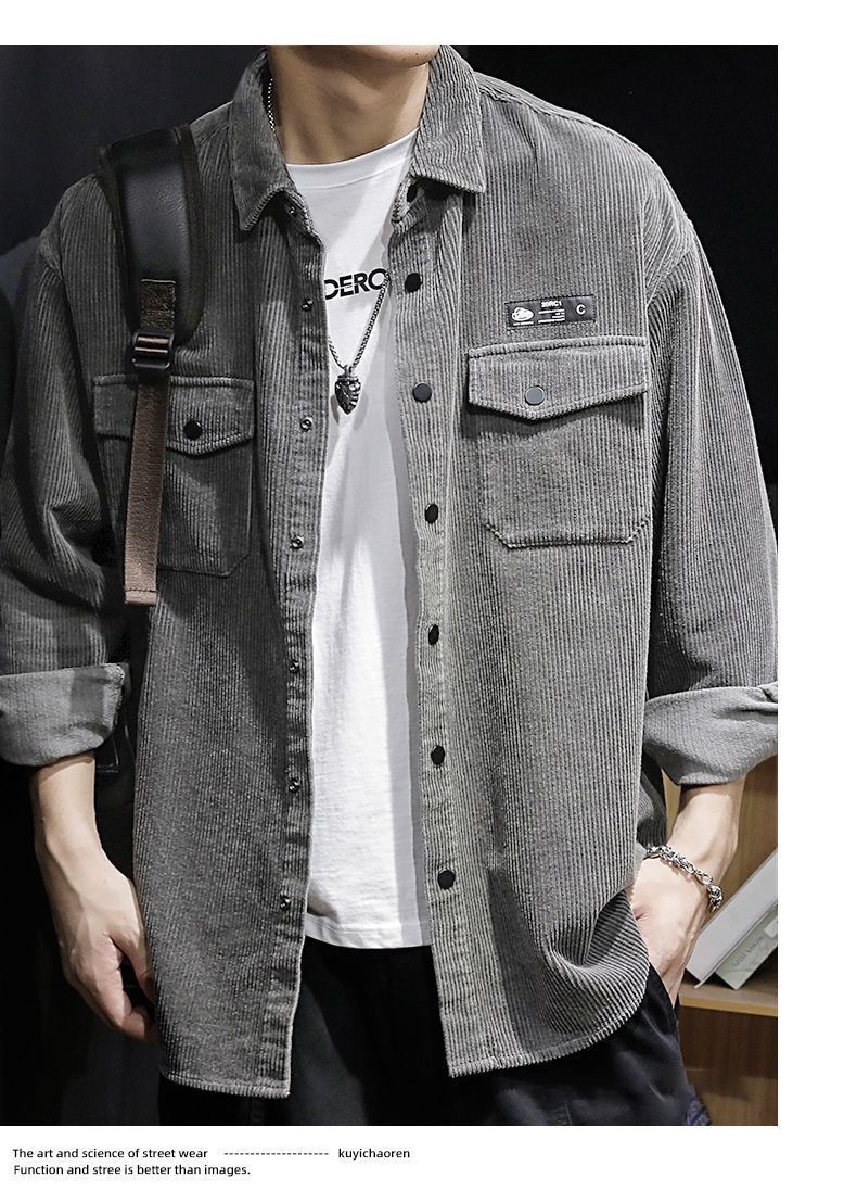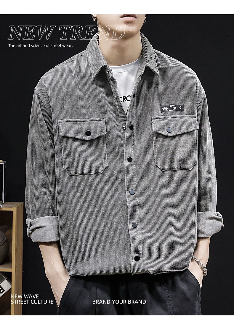 코듀로이 셔츠 남성 봄, 가을 루즈 플러스 지방 홍콩 스타일 캐주얼 긴팔 셔츠 드롭 배송 작업복스토어 가기